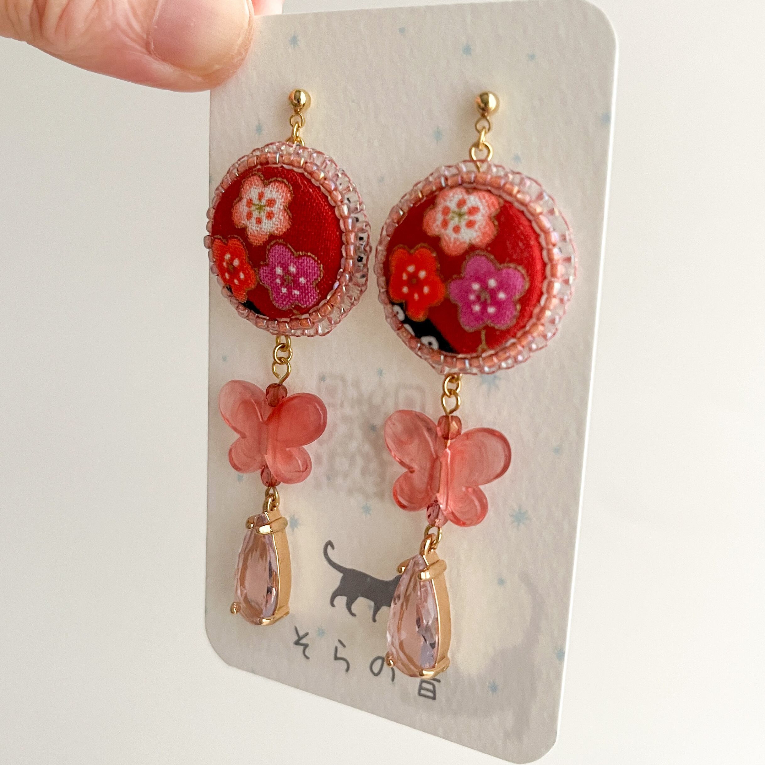 梅の花と蝶のピアスです。