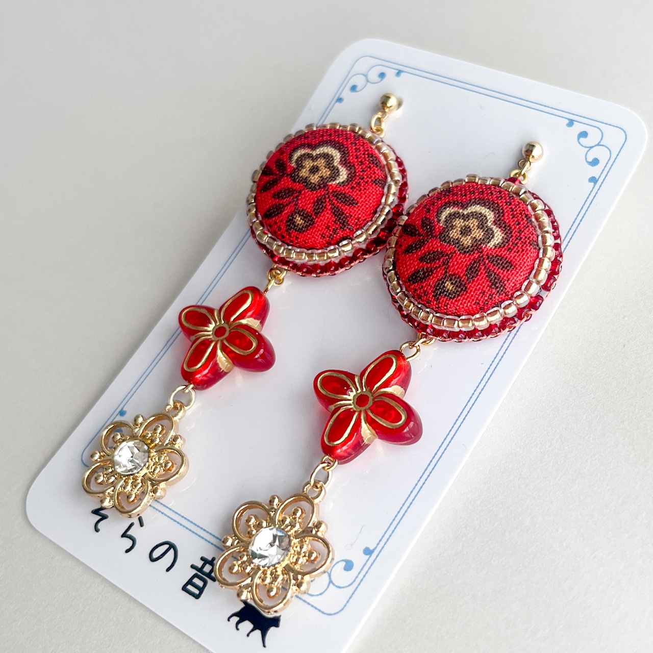 くるみボタンは、布を3㎝×3㎝に切り金具を入れて作ります。