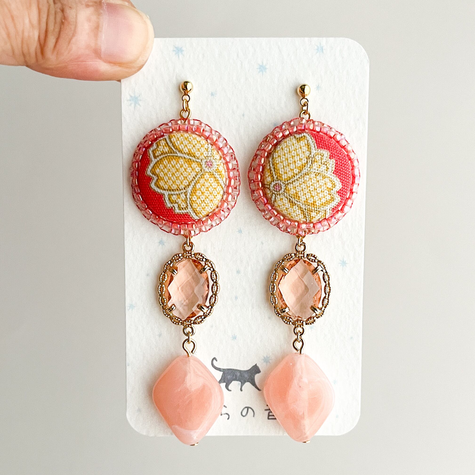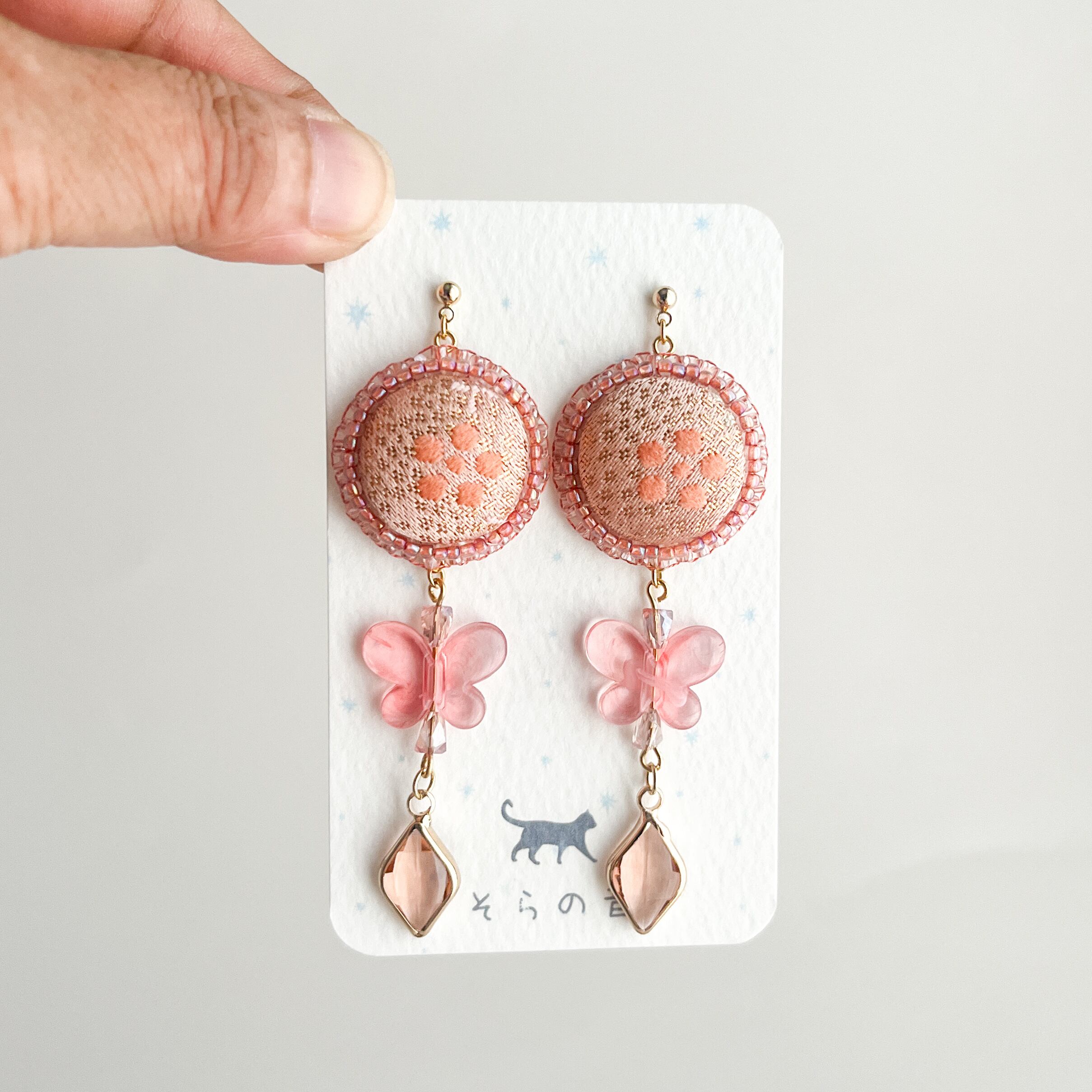 新作は金襴(布に艶感がありとても綺麗です)をくるみボタンにして作った作品です!