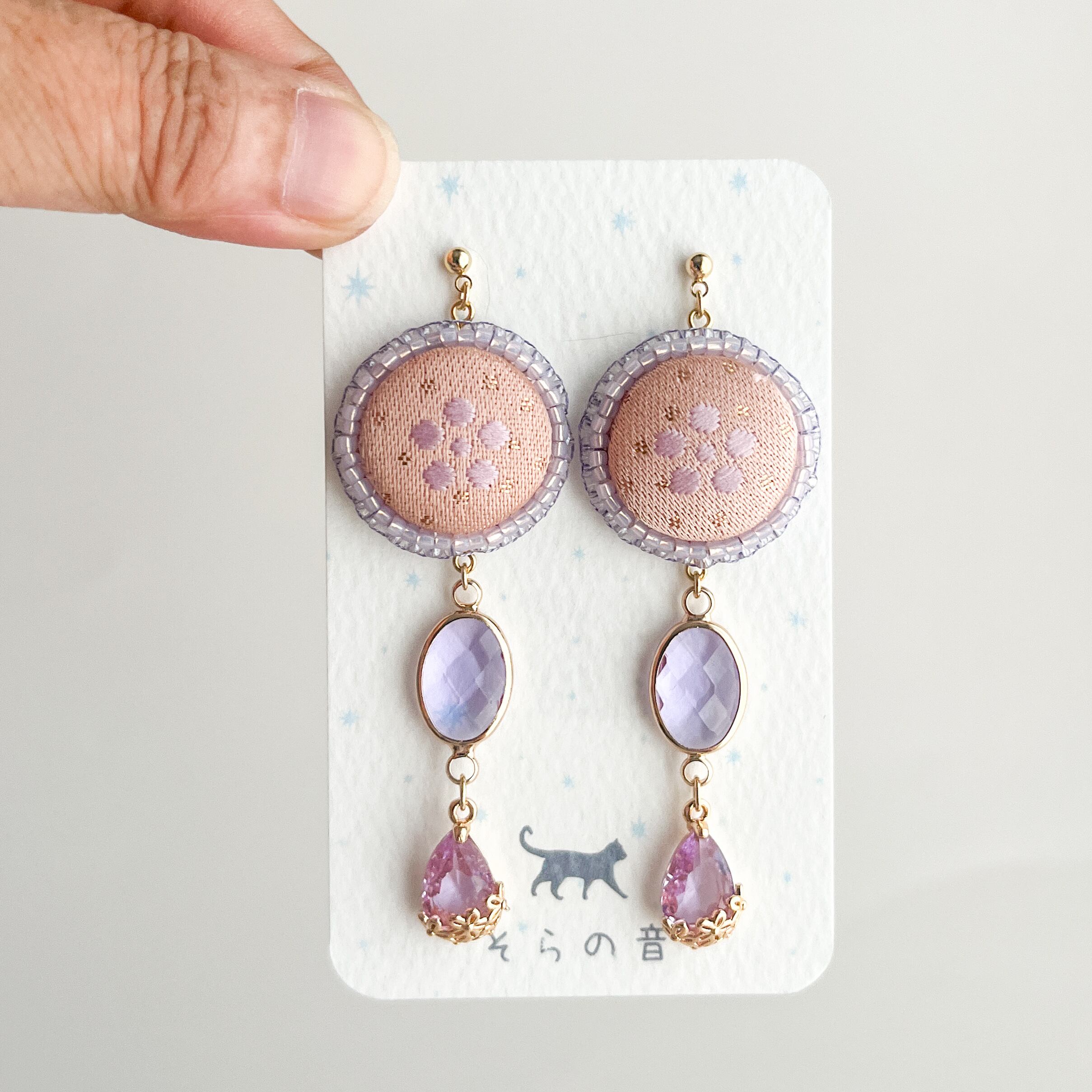布が綺麗なのでチャームやビーズは抑え目の色にしました。