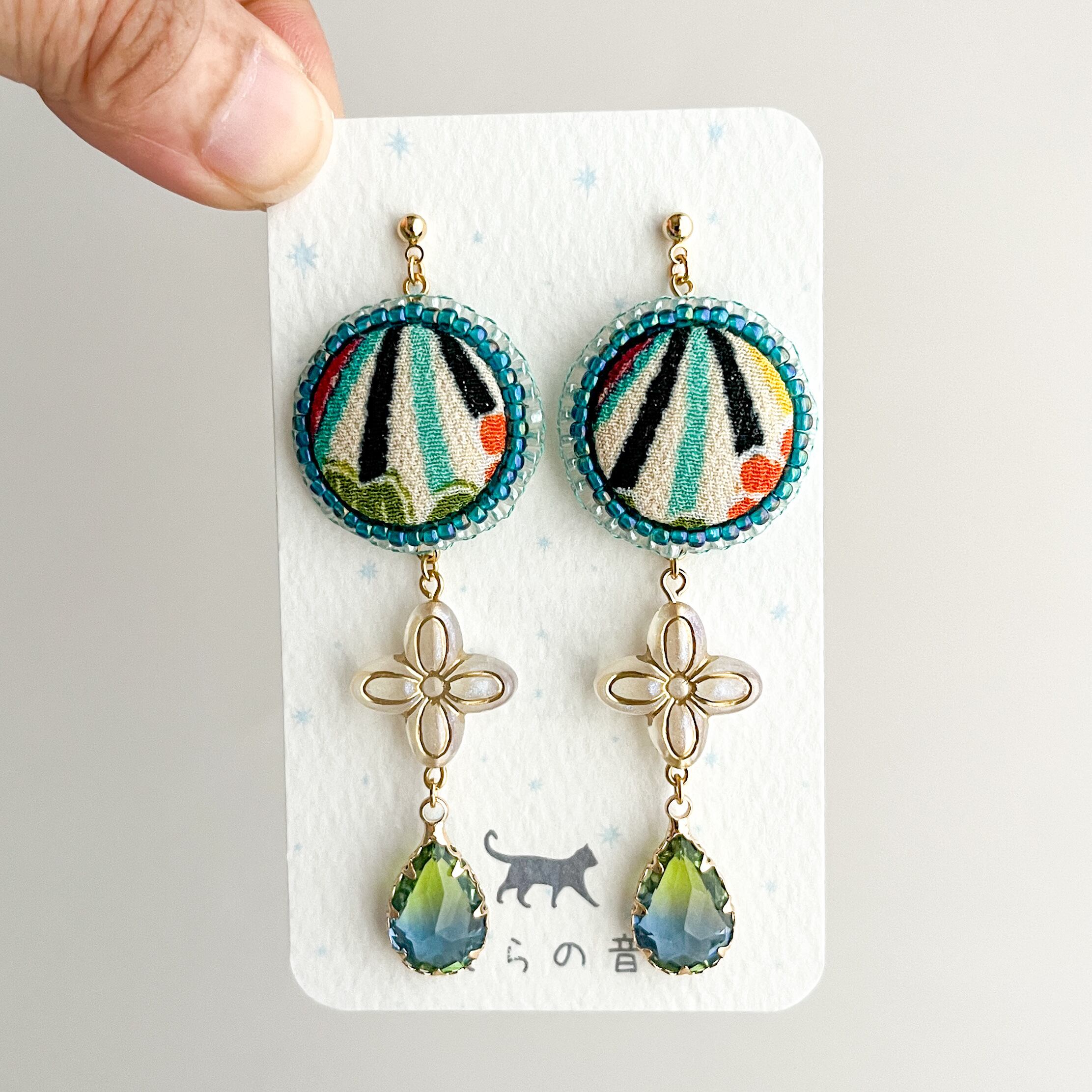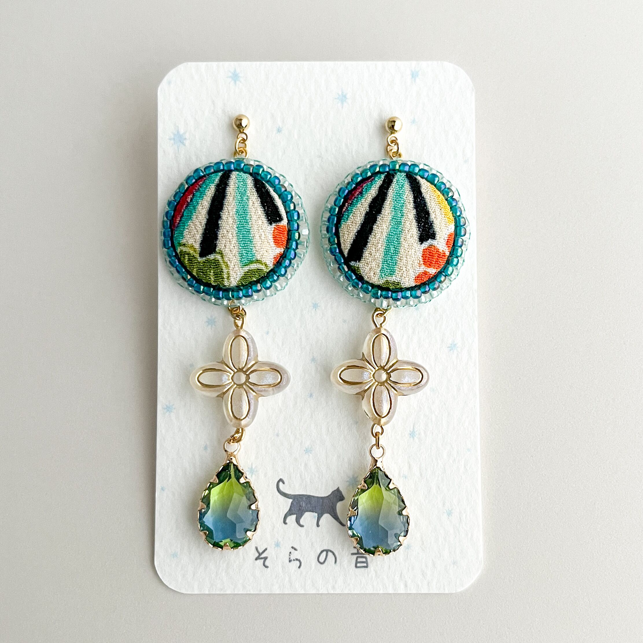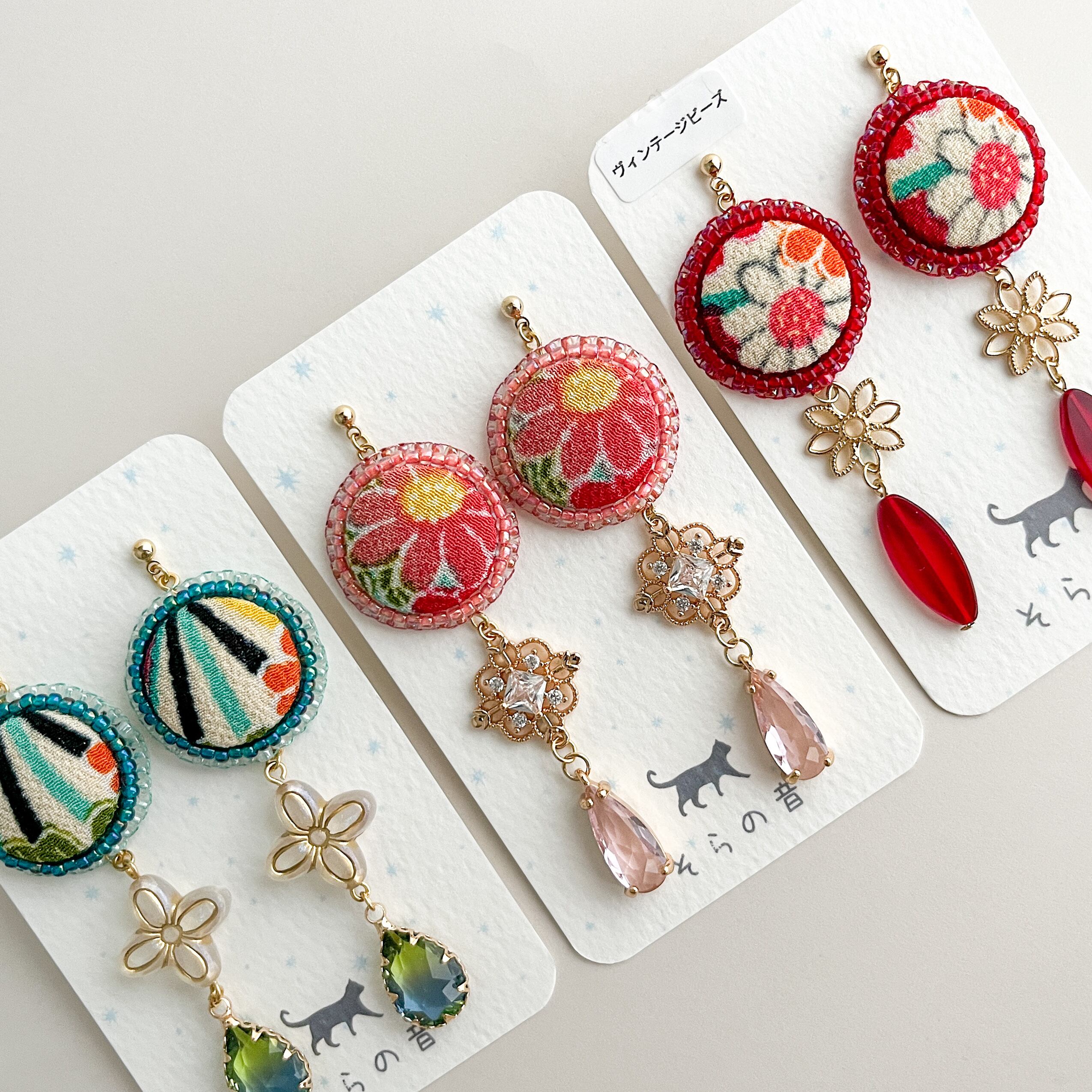 一越ちりめんをくるみボタンにして作ったピアスです。