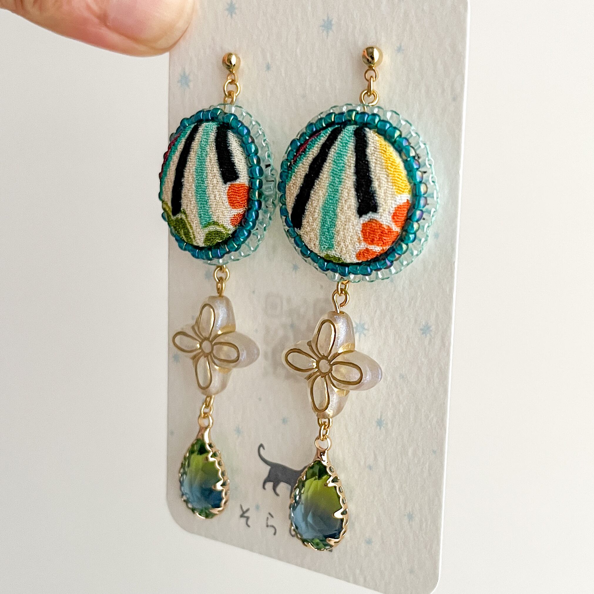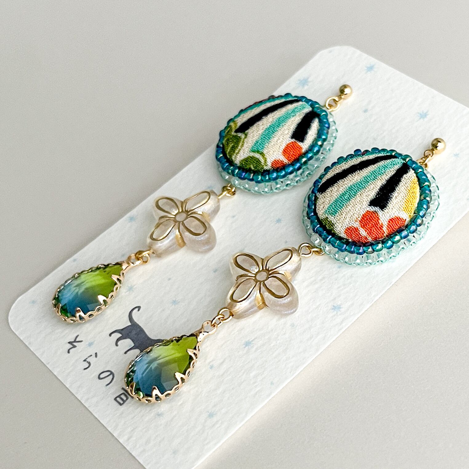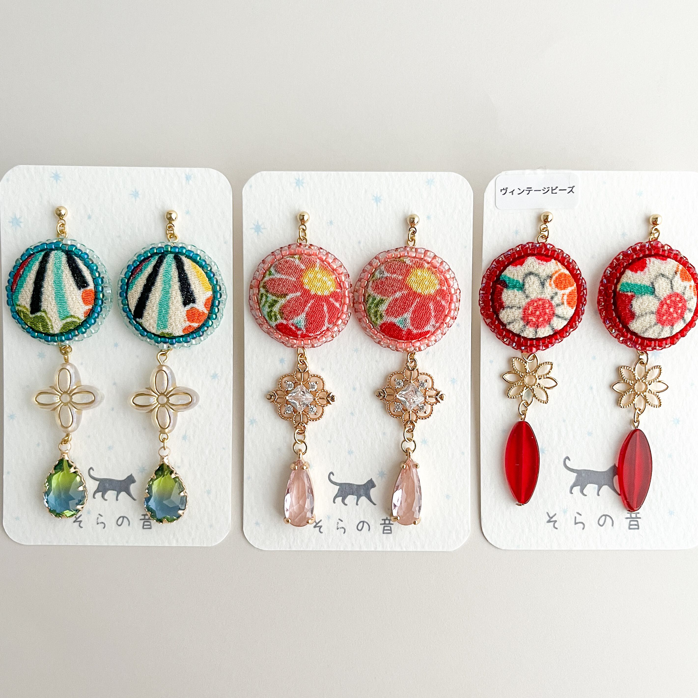 一越ちりめんをくるみボタンにして作ったピアスです。