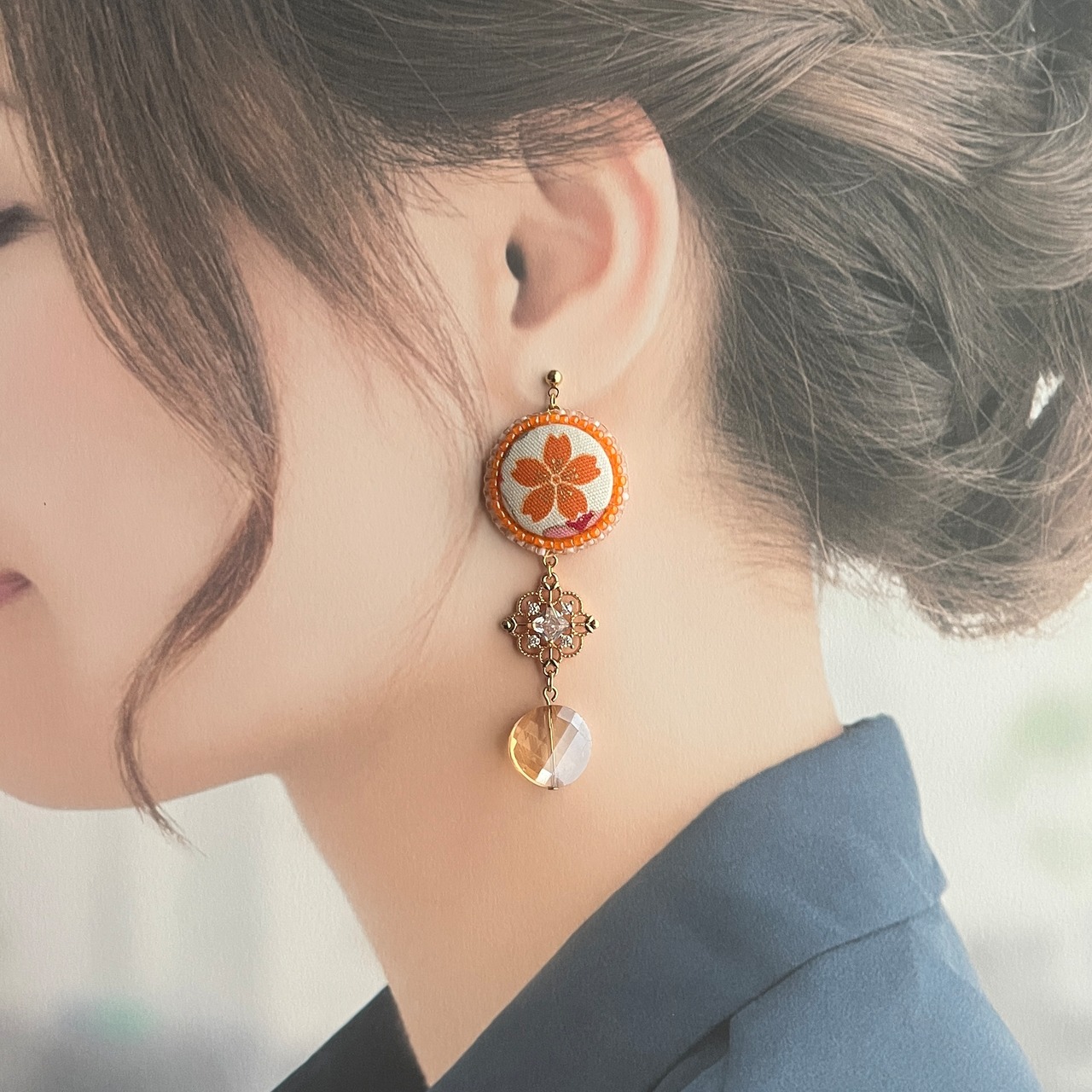 大ぶりに見えてとても軽く着け心地にもこだわって制作しております。