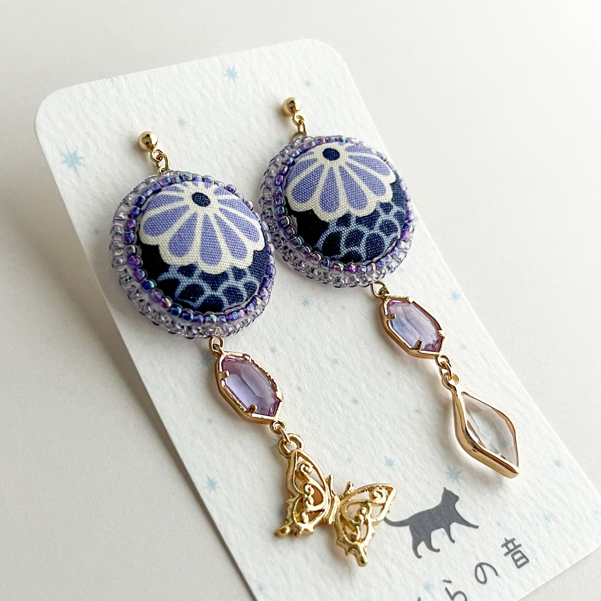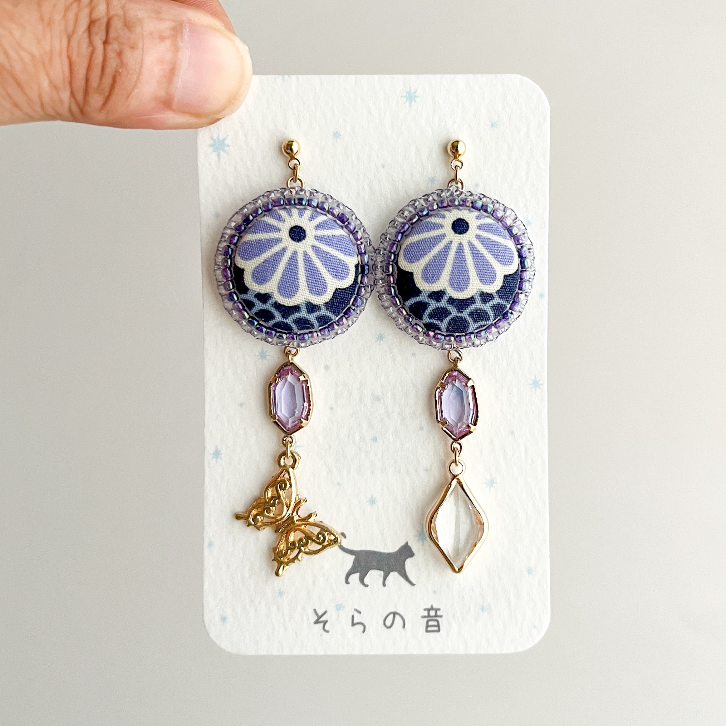 くるみボタンと蝶のピアス