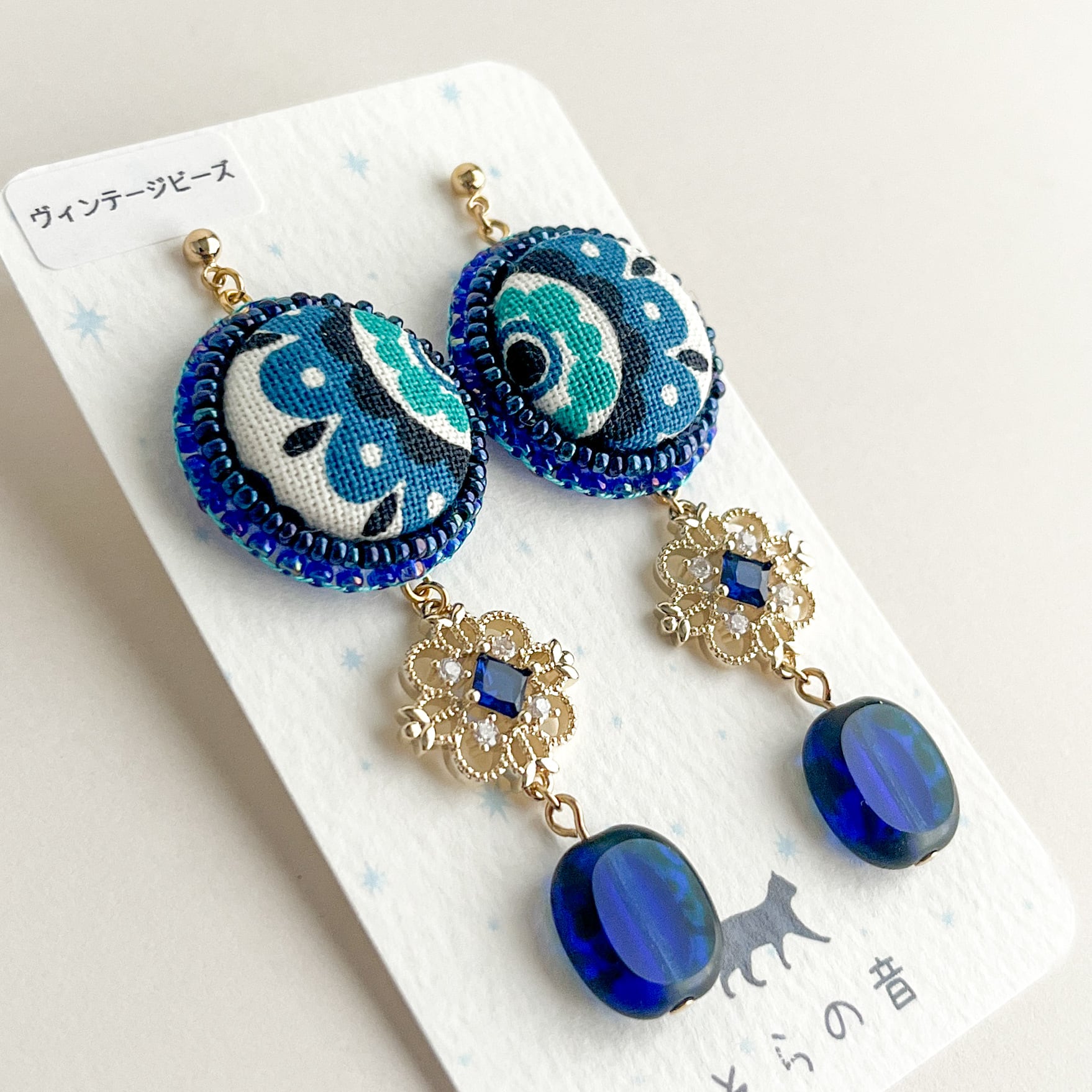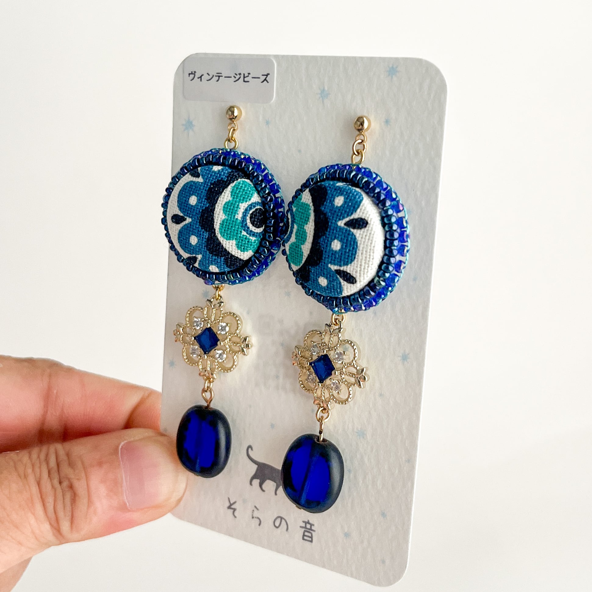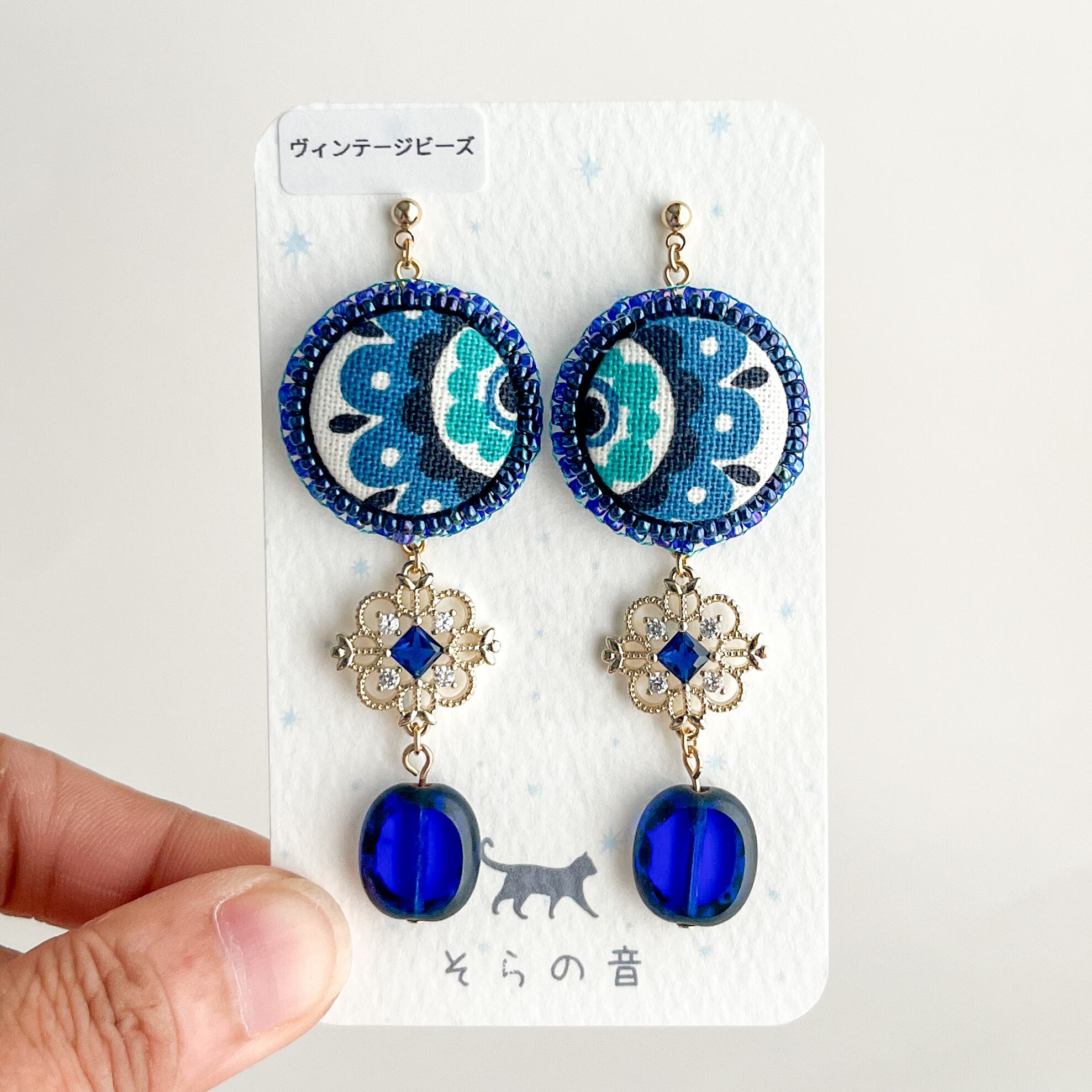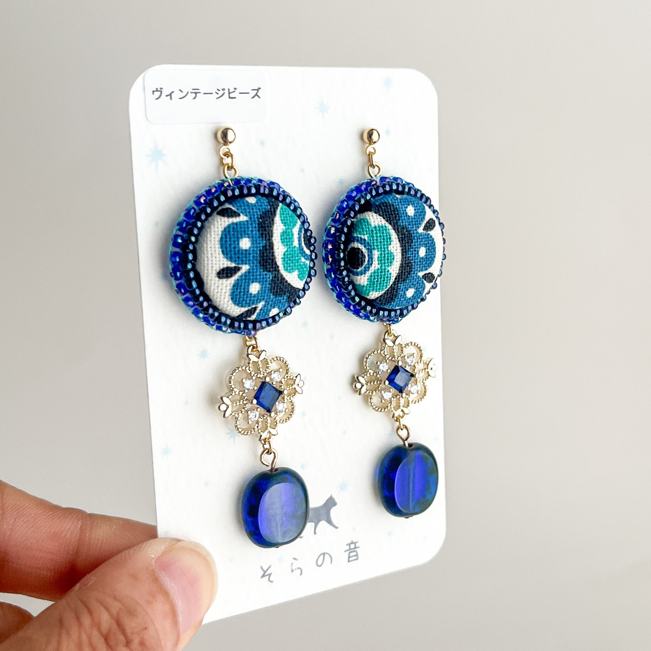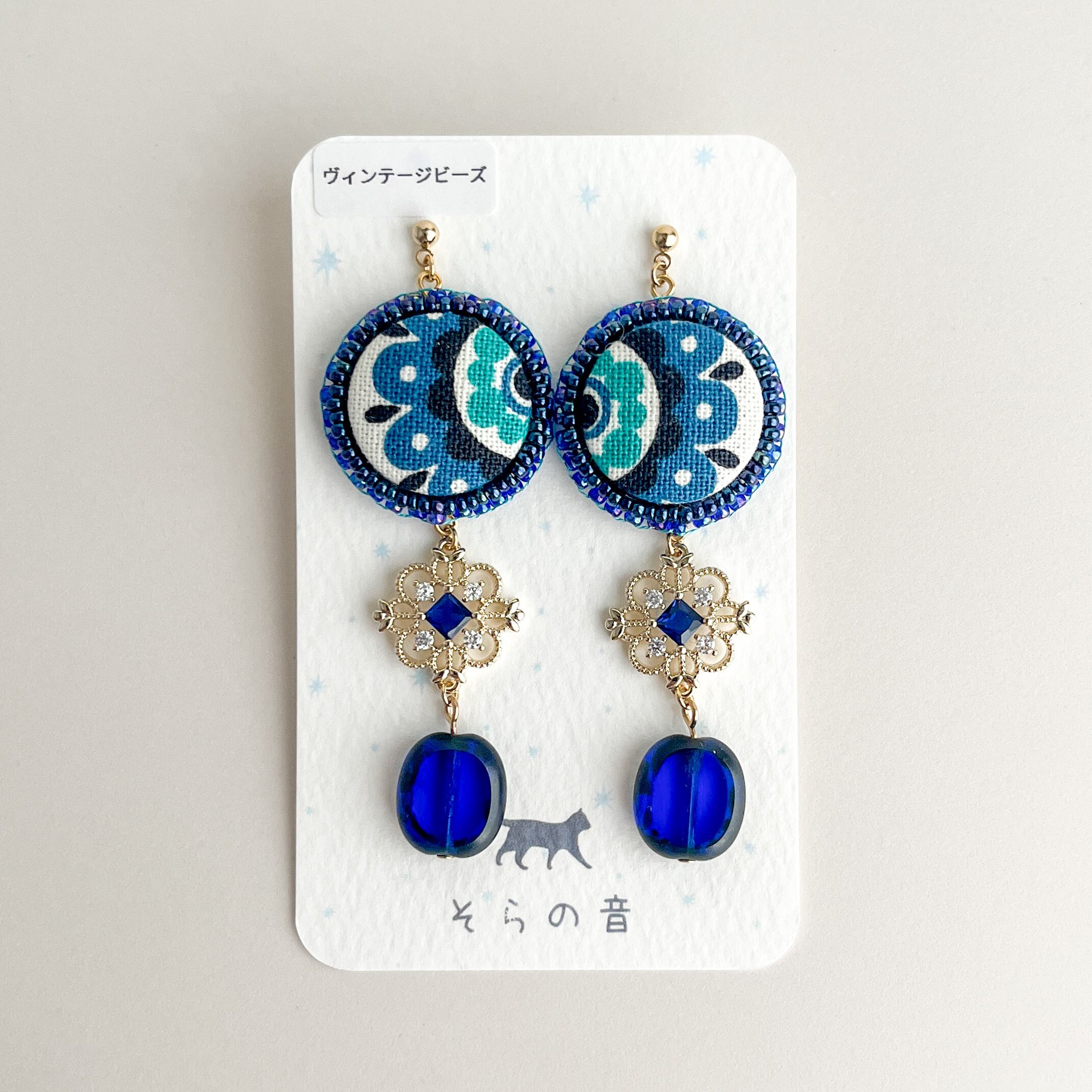 レトロなくるみボタンとヴィンテージビーズのピアス