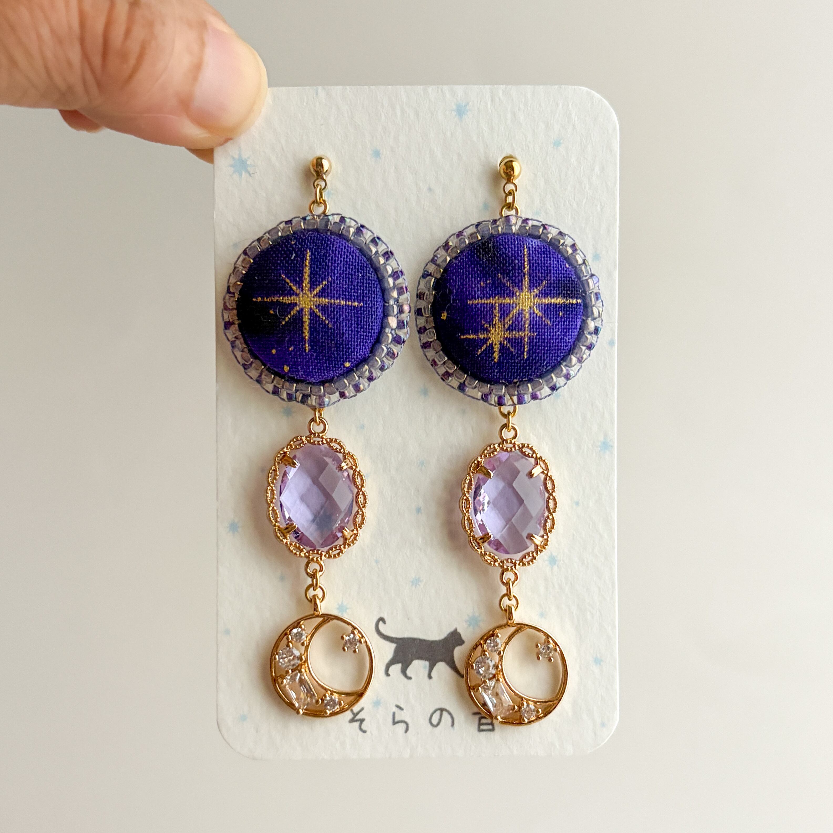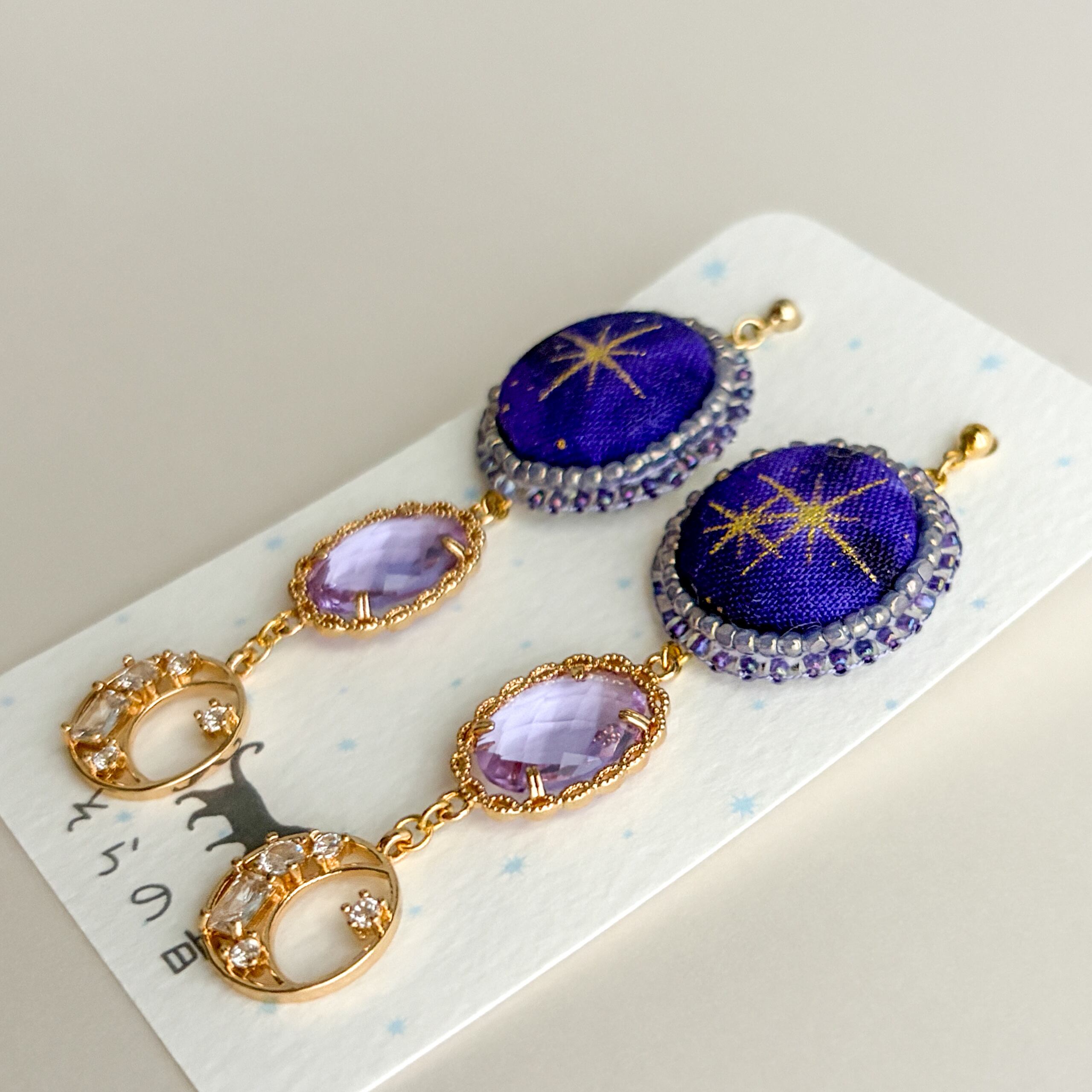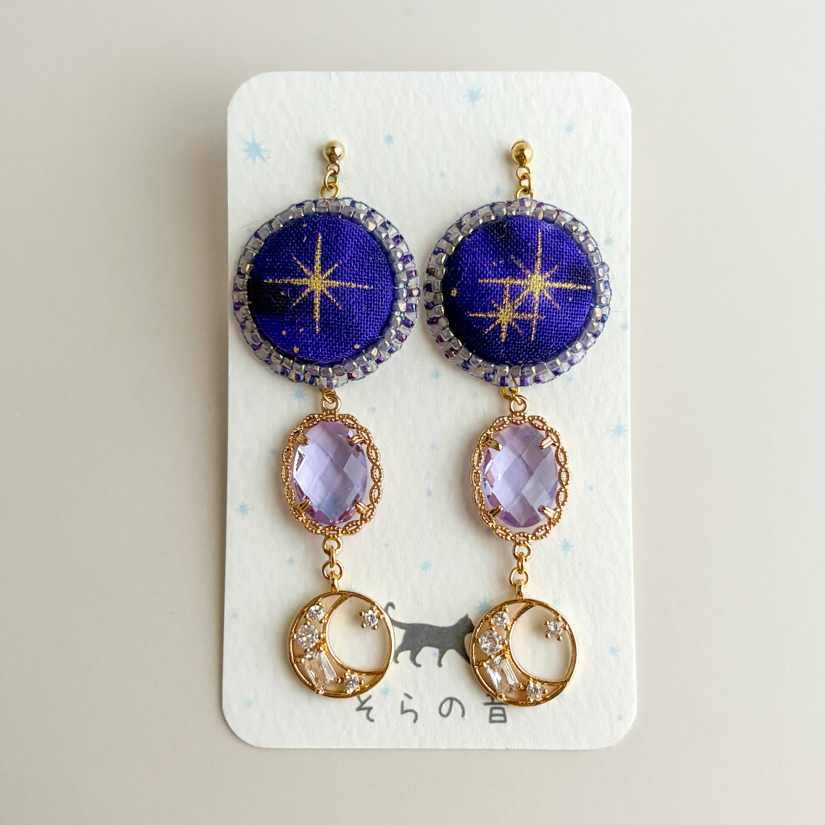 星と月のピアスです。