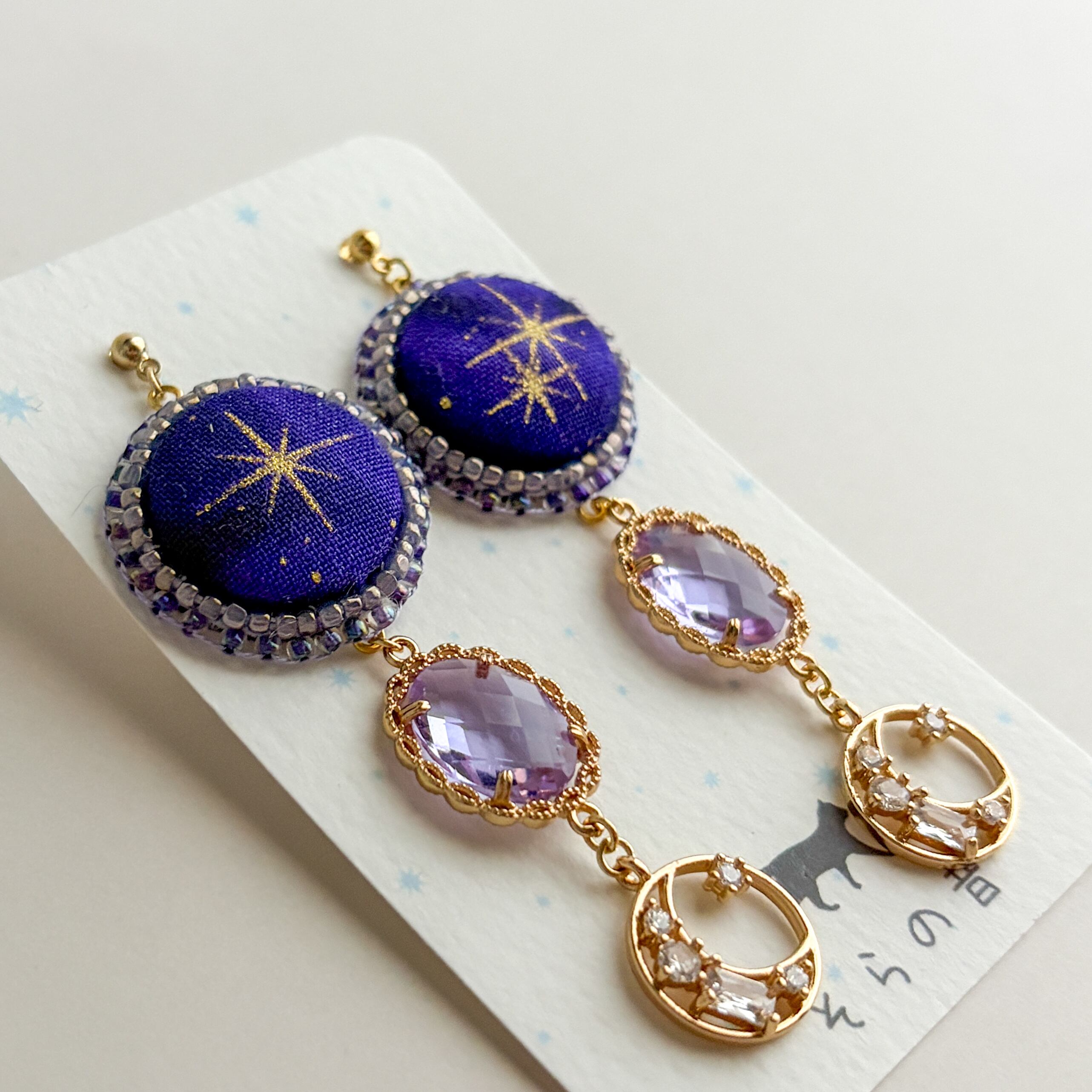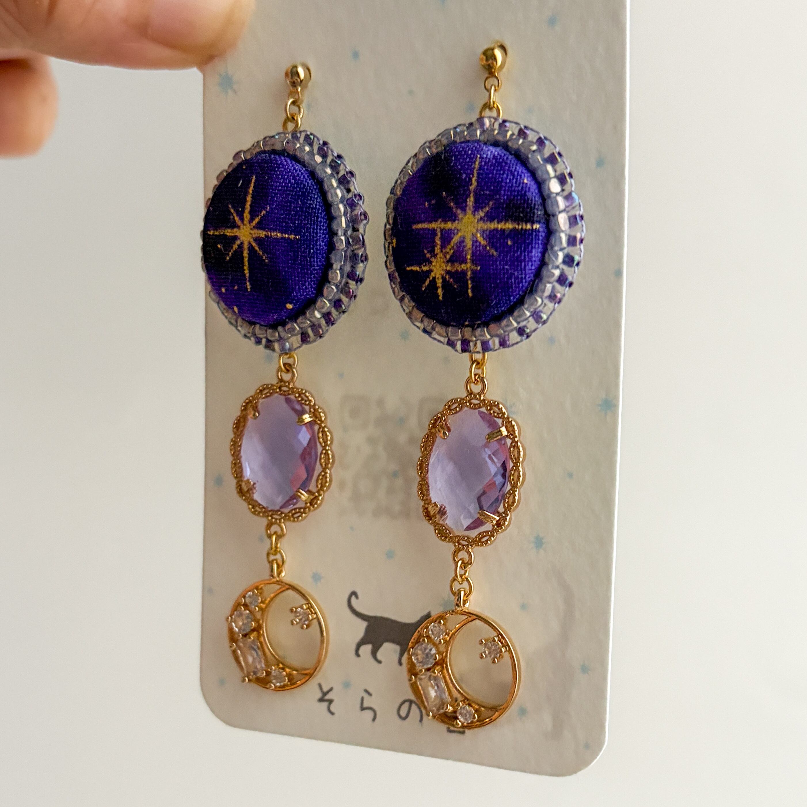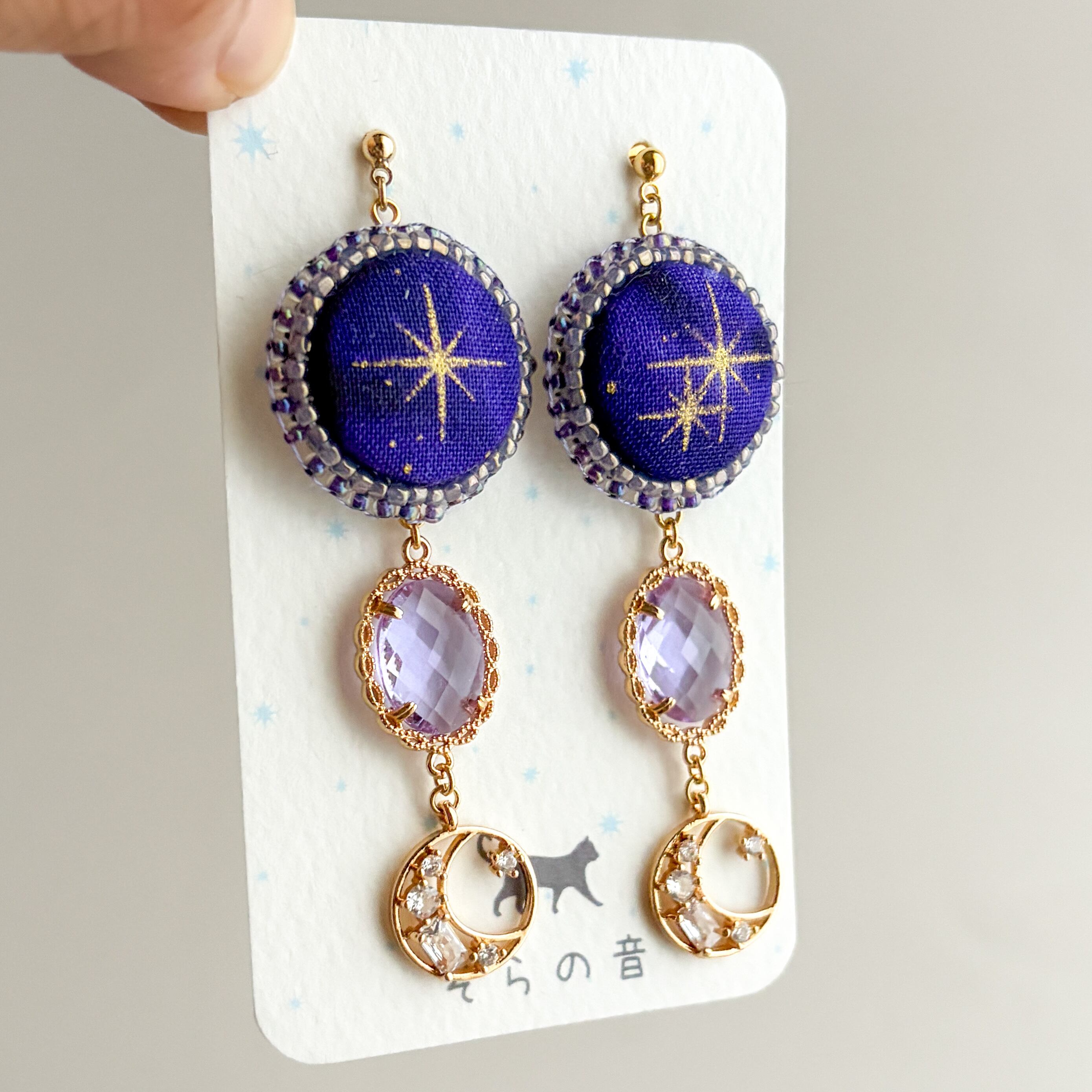 星と月のピアスです。