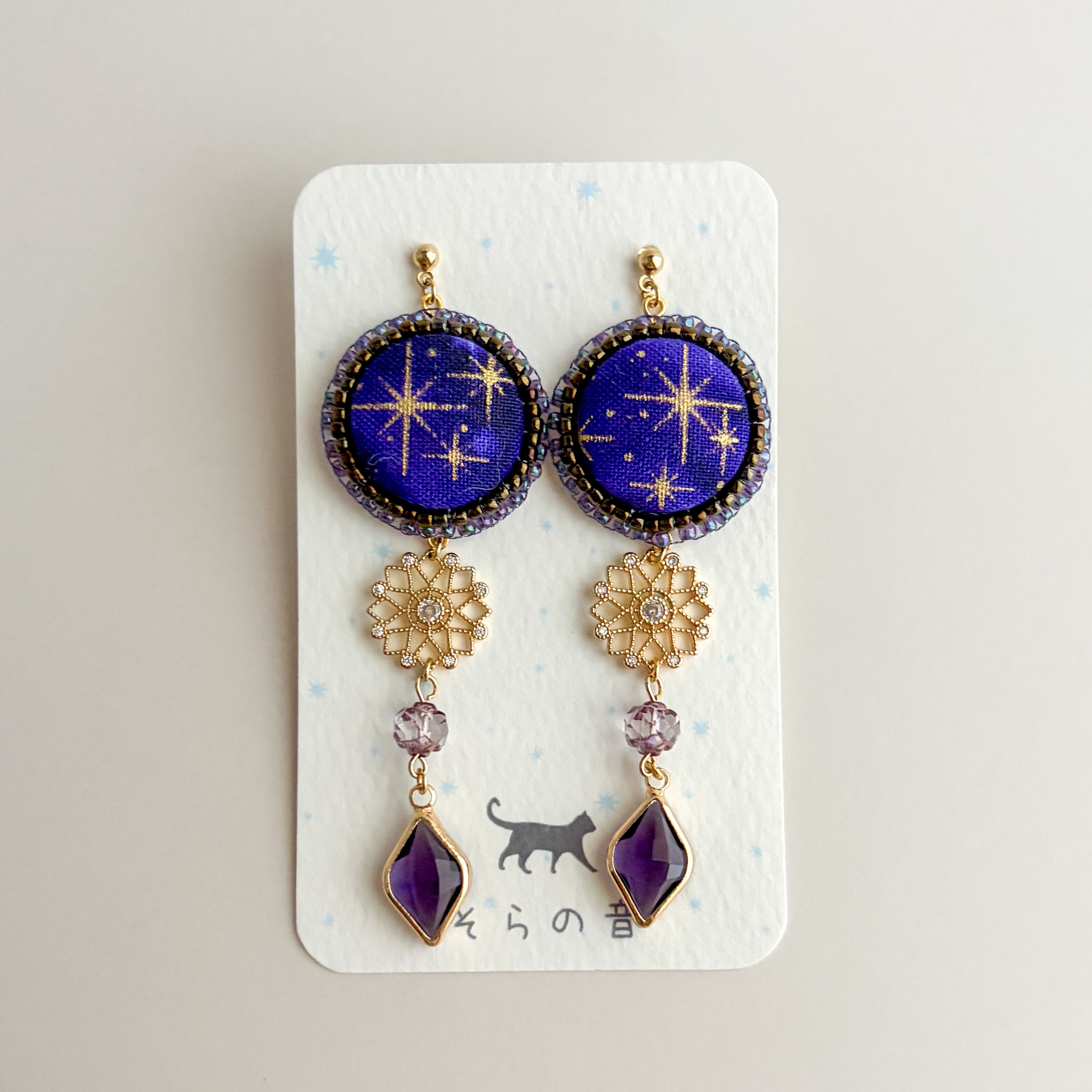 星のくるみボタンと月のピアス