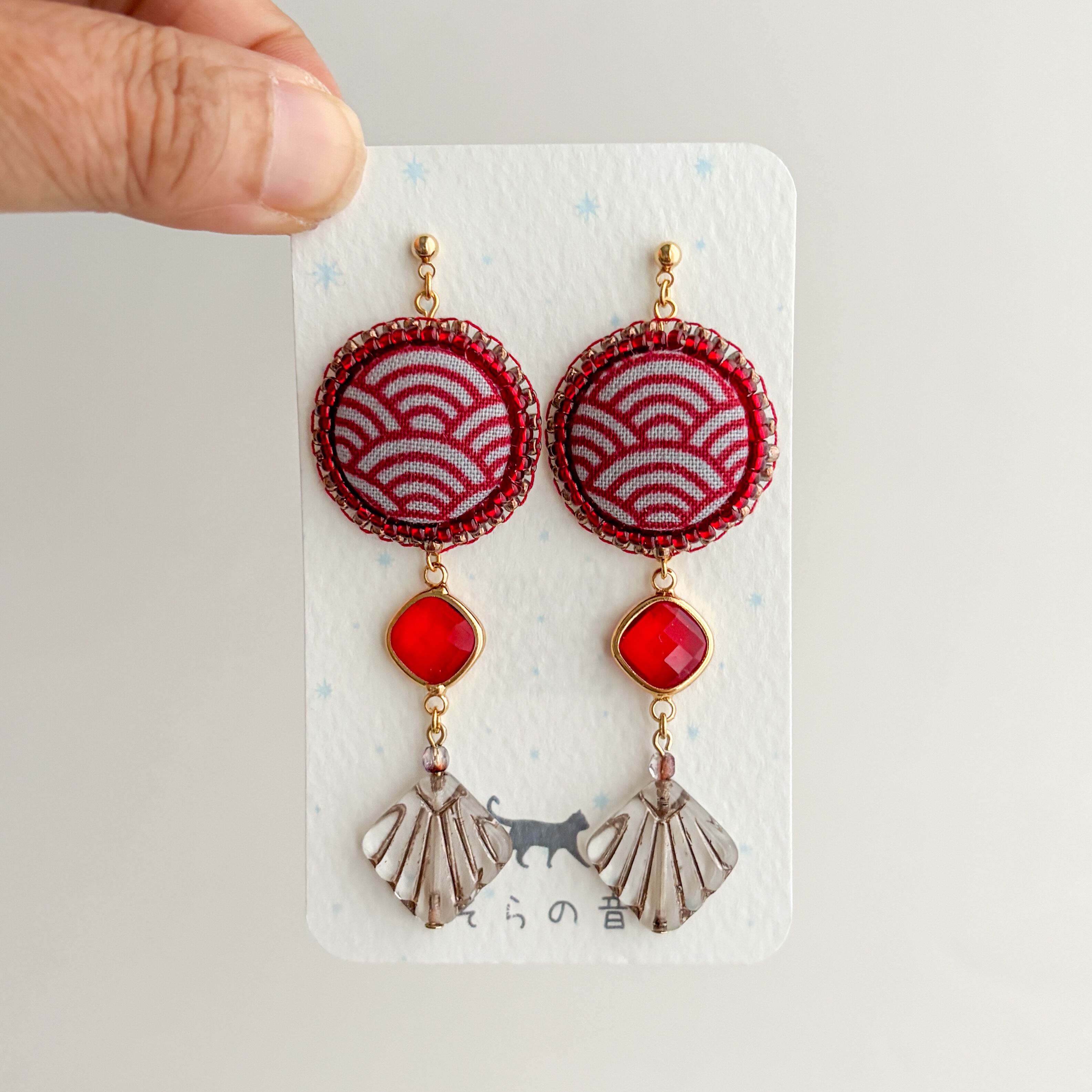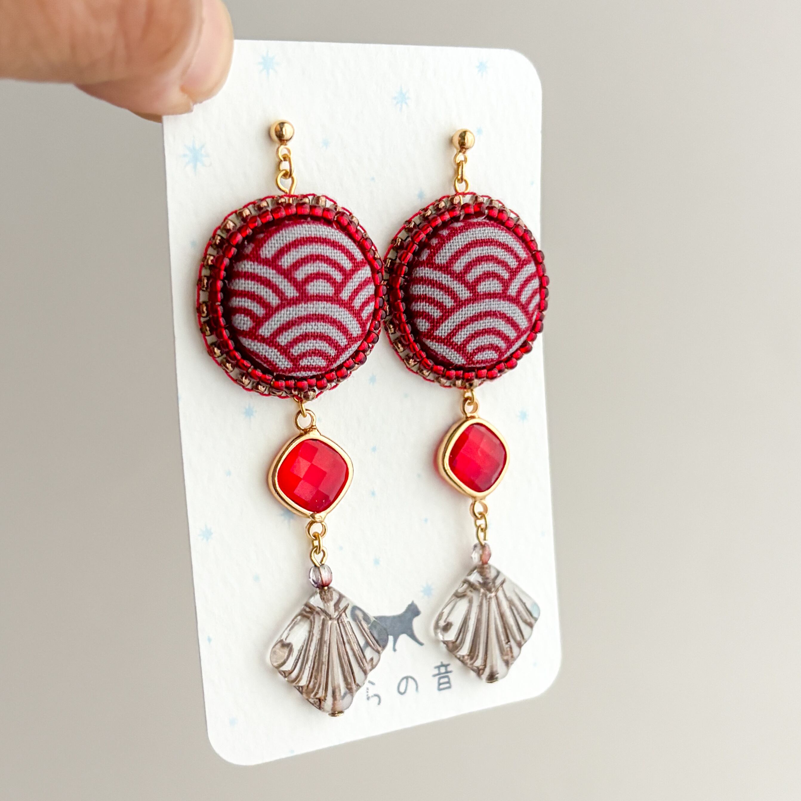 青海波模様のくるみボタンのピアス