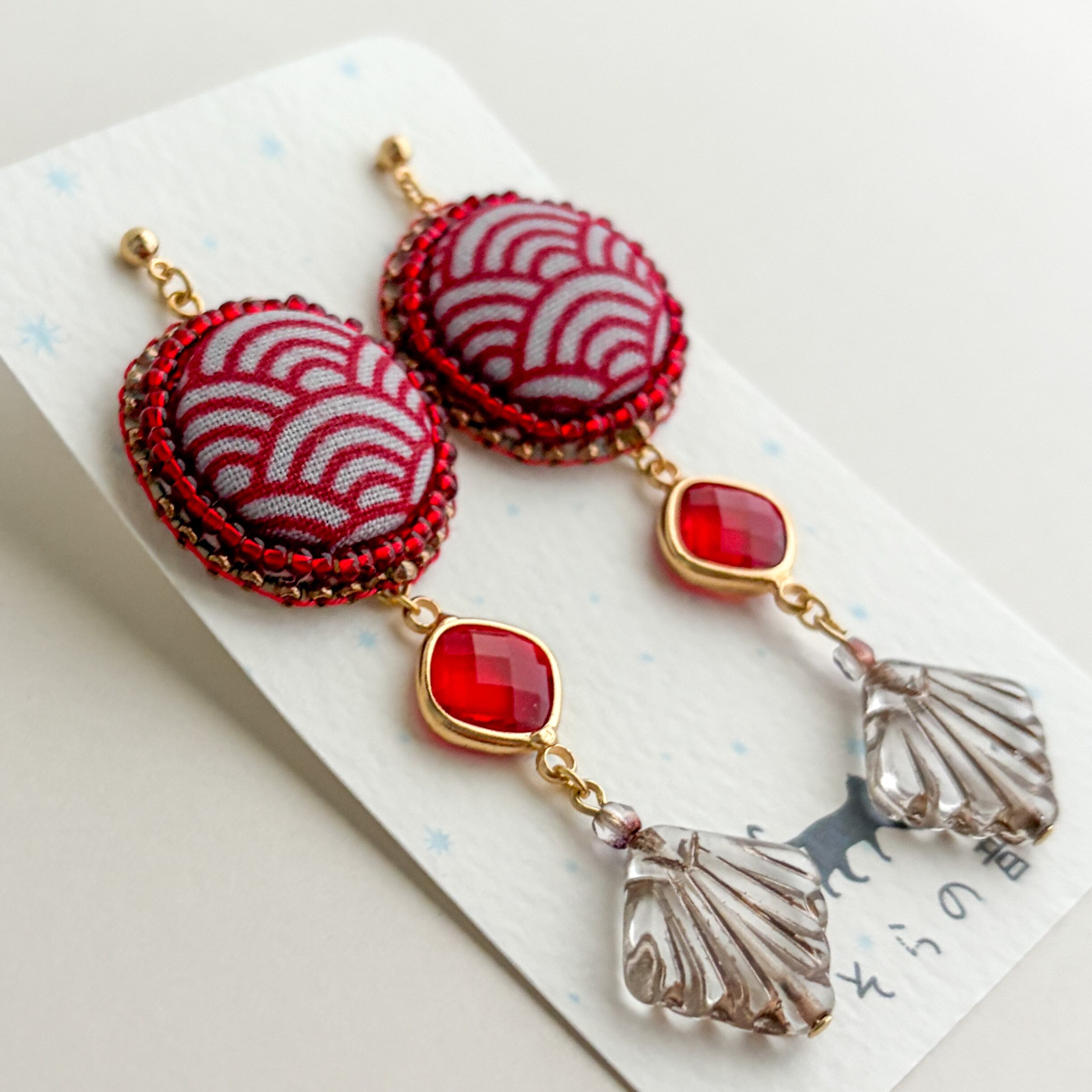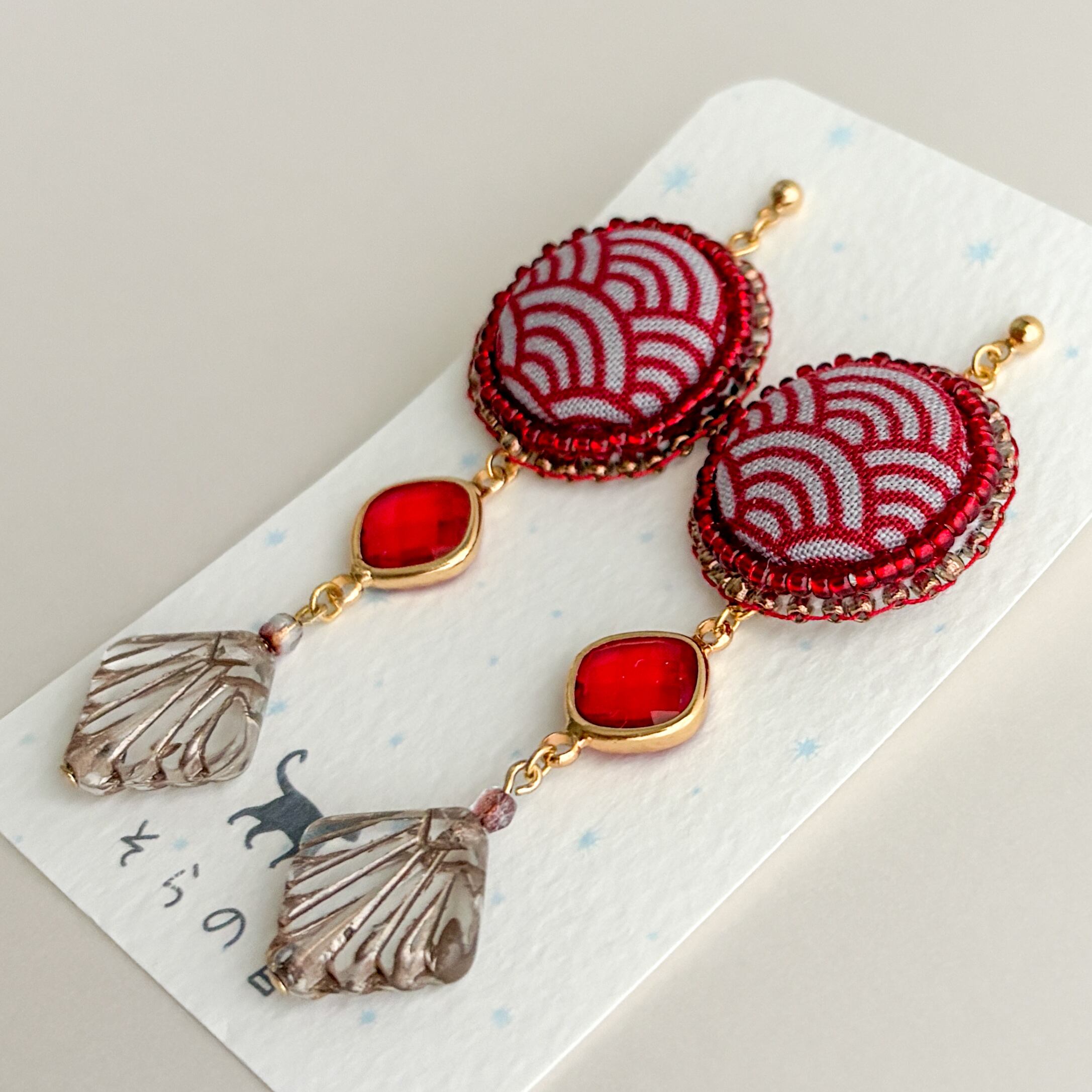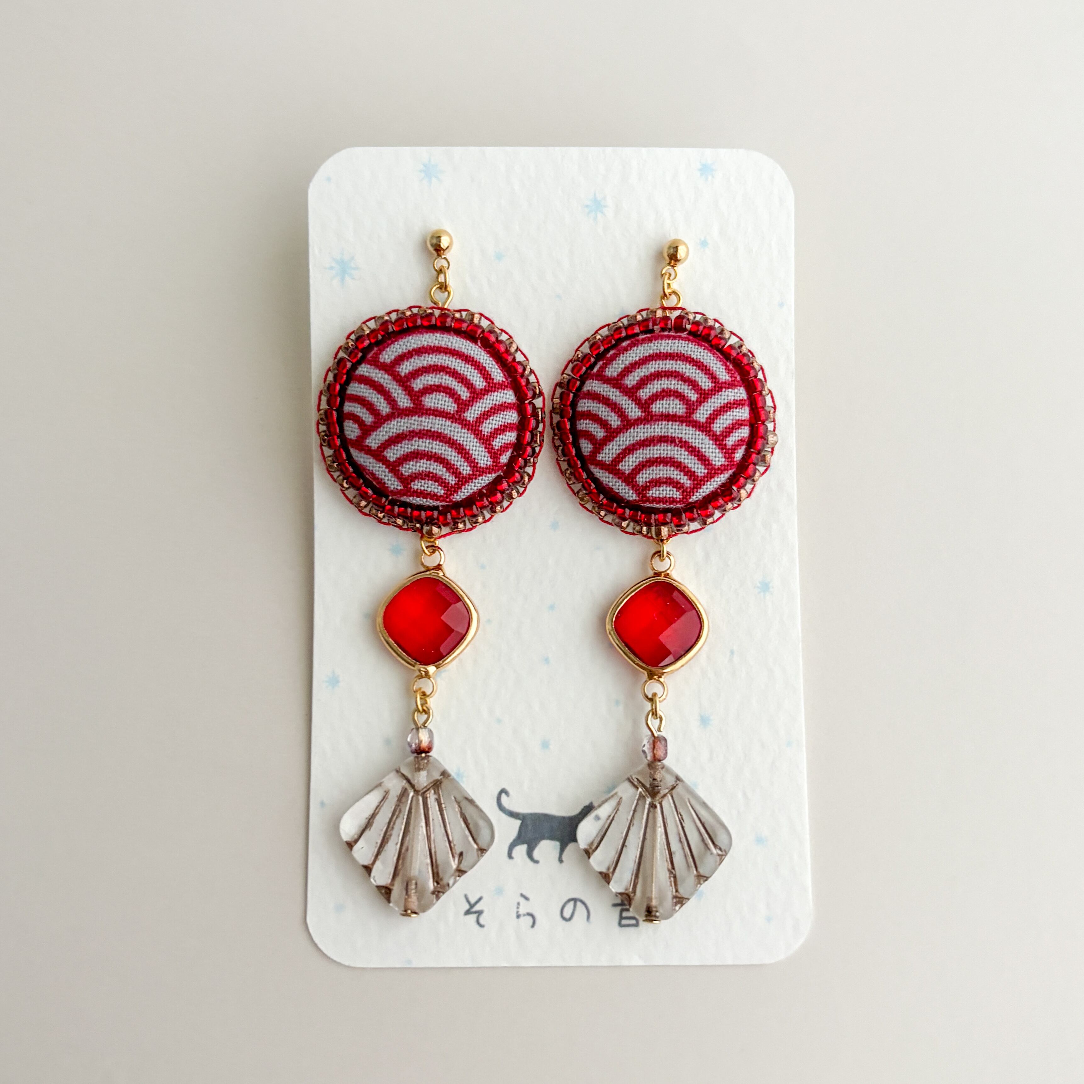 青海波(せいがいは)模様のくるみボタンのピアスです。