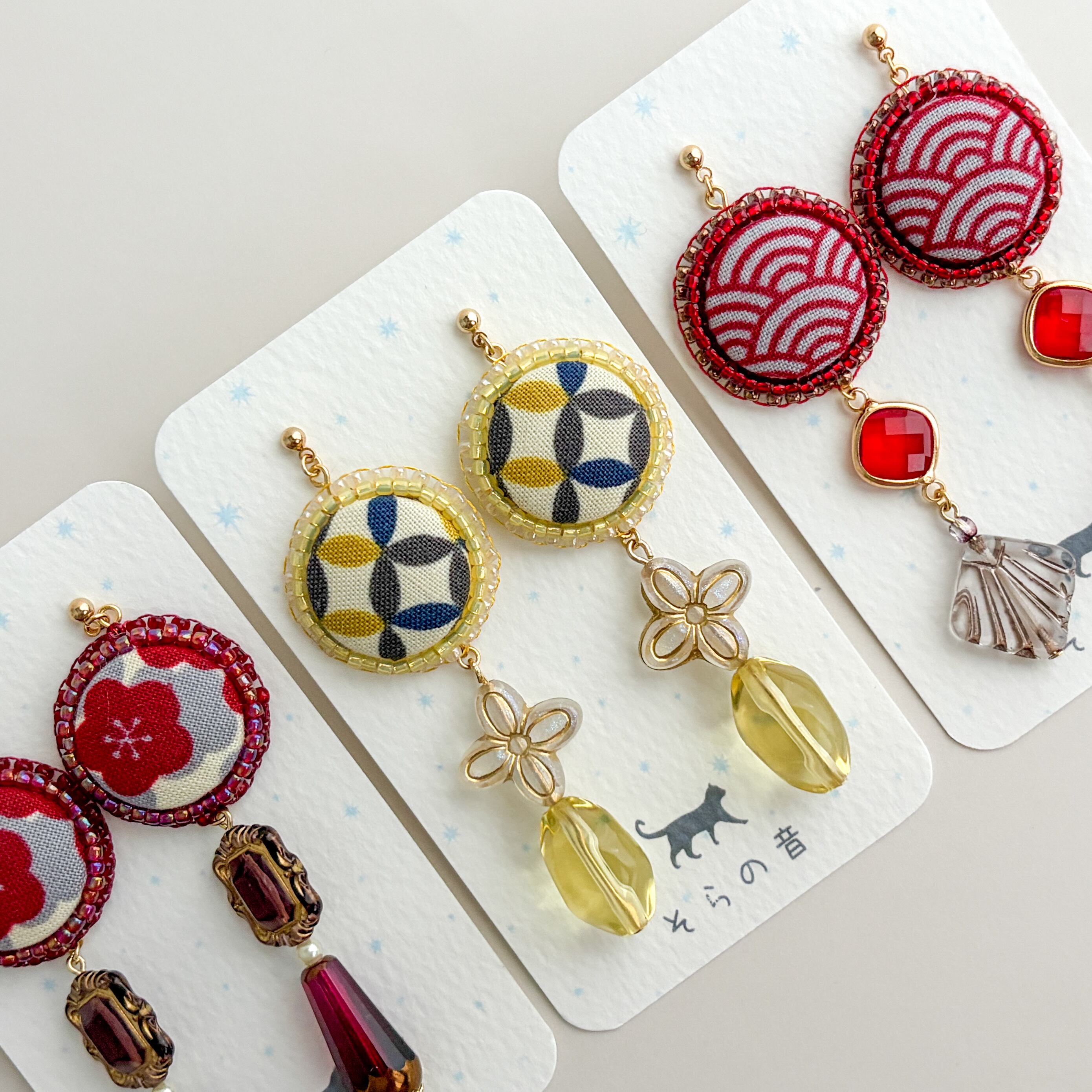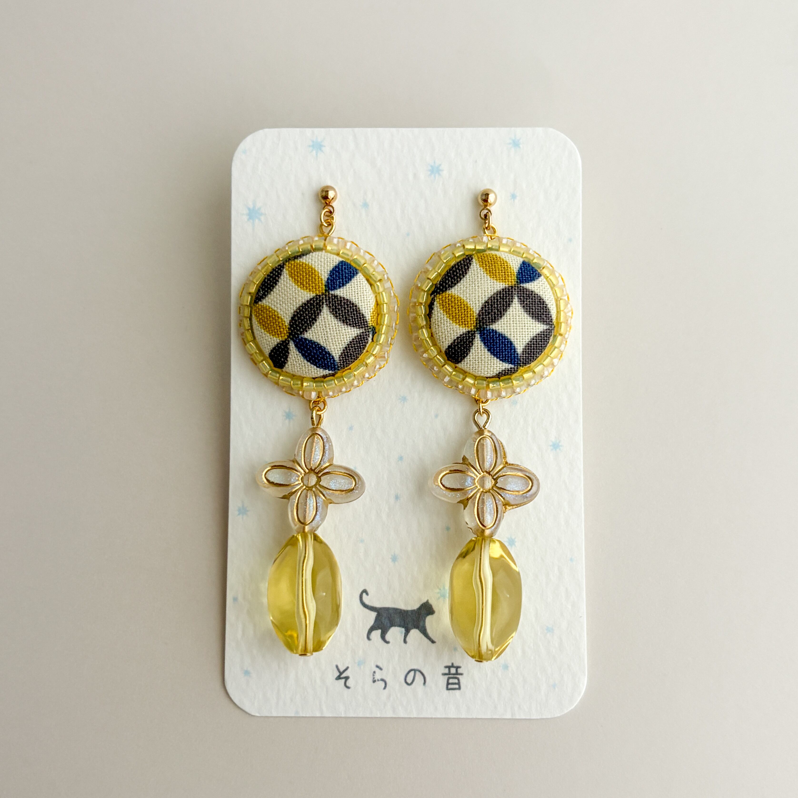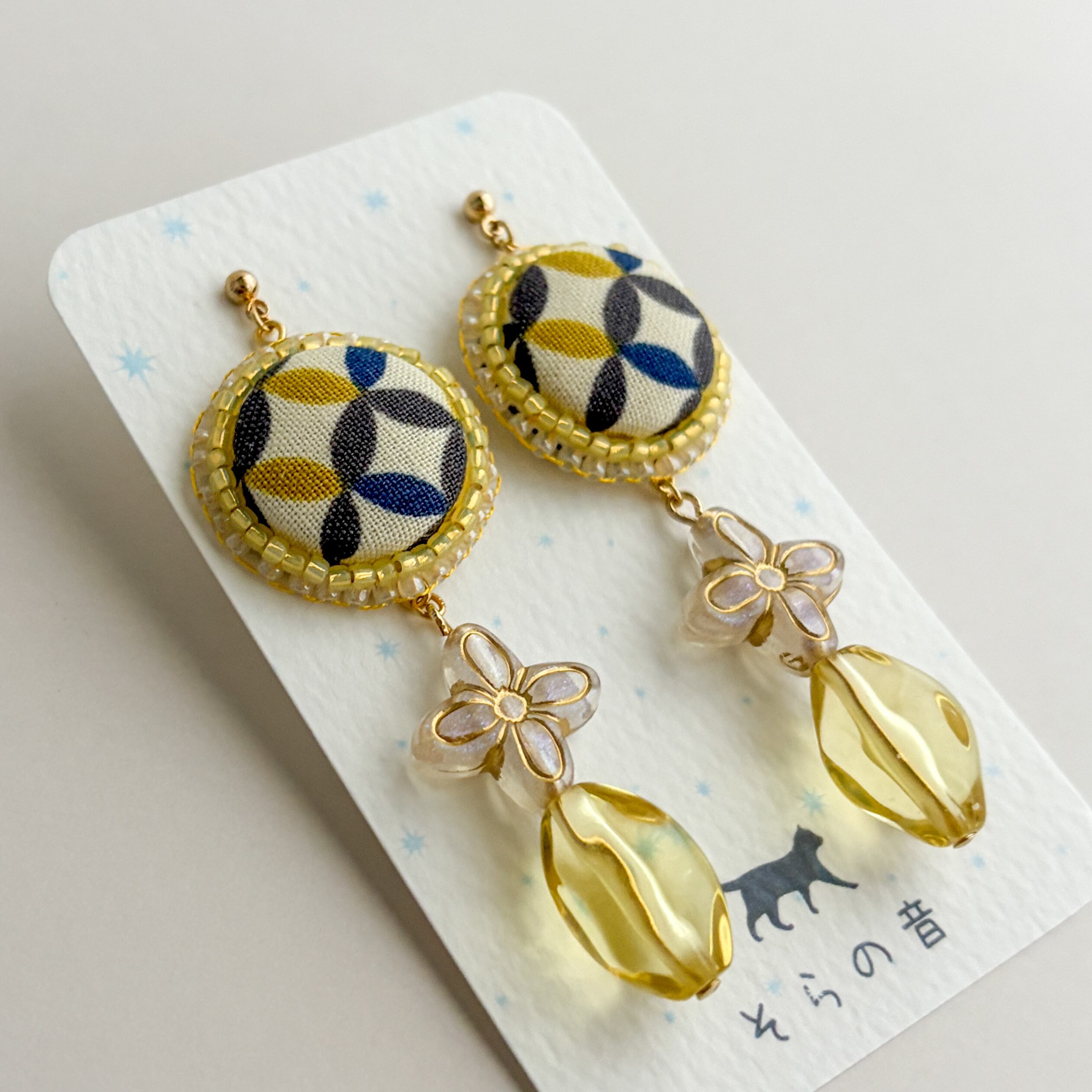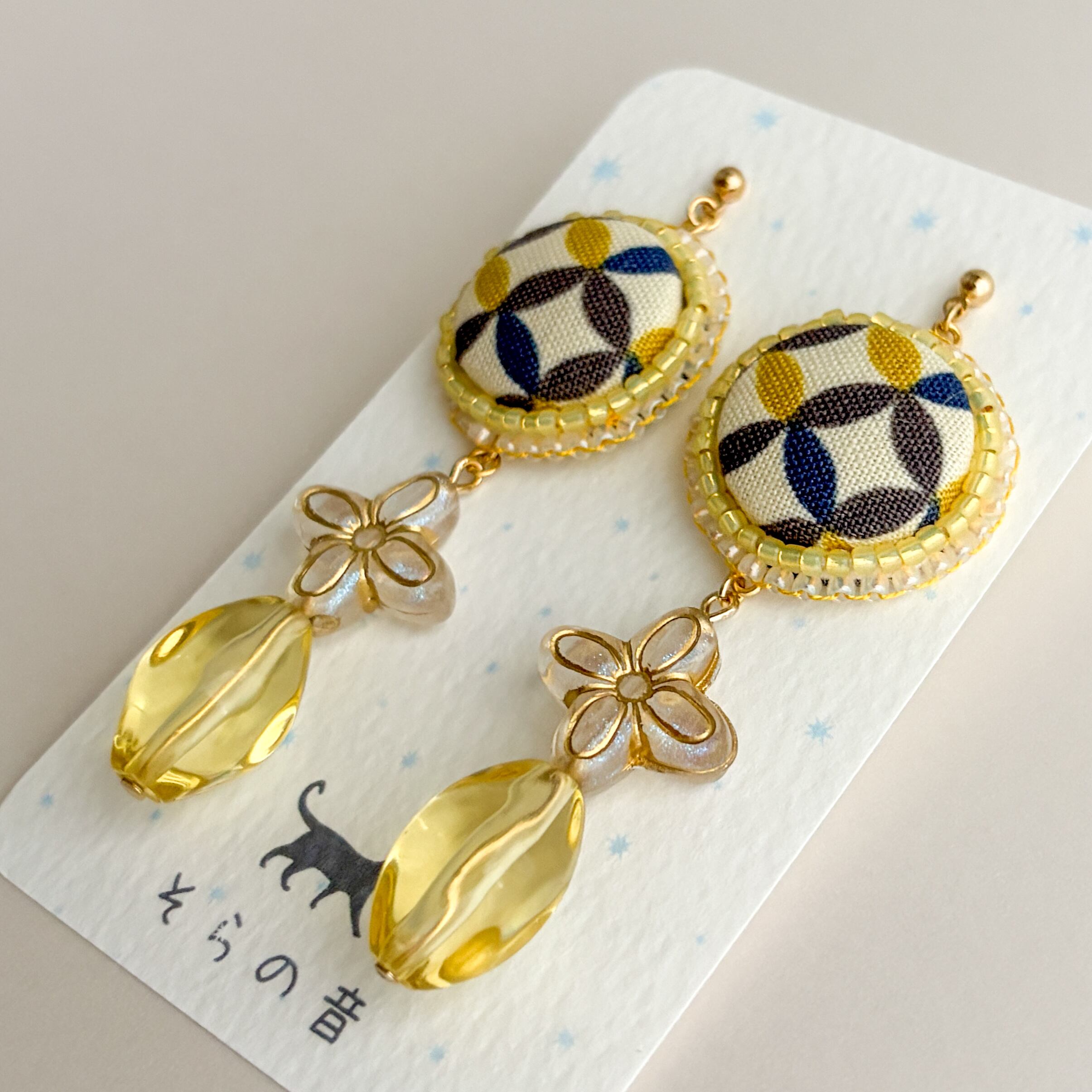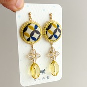 ・矢絣のくるみボタンとタッセルの耳飾り