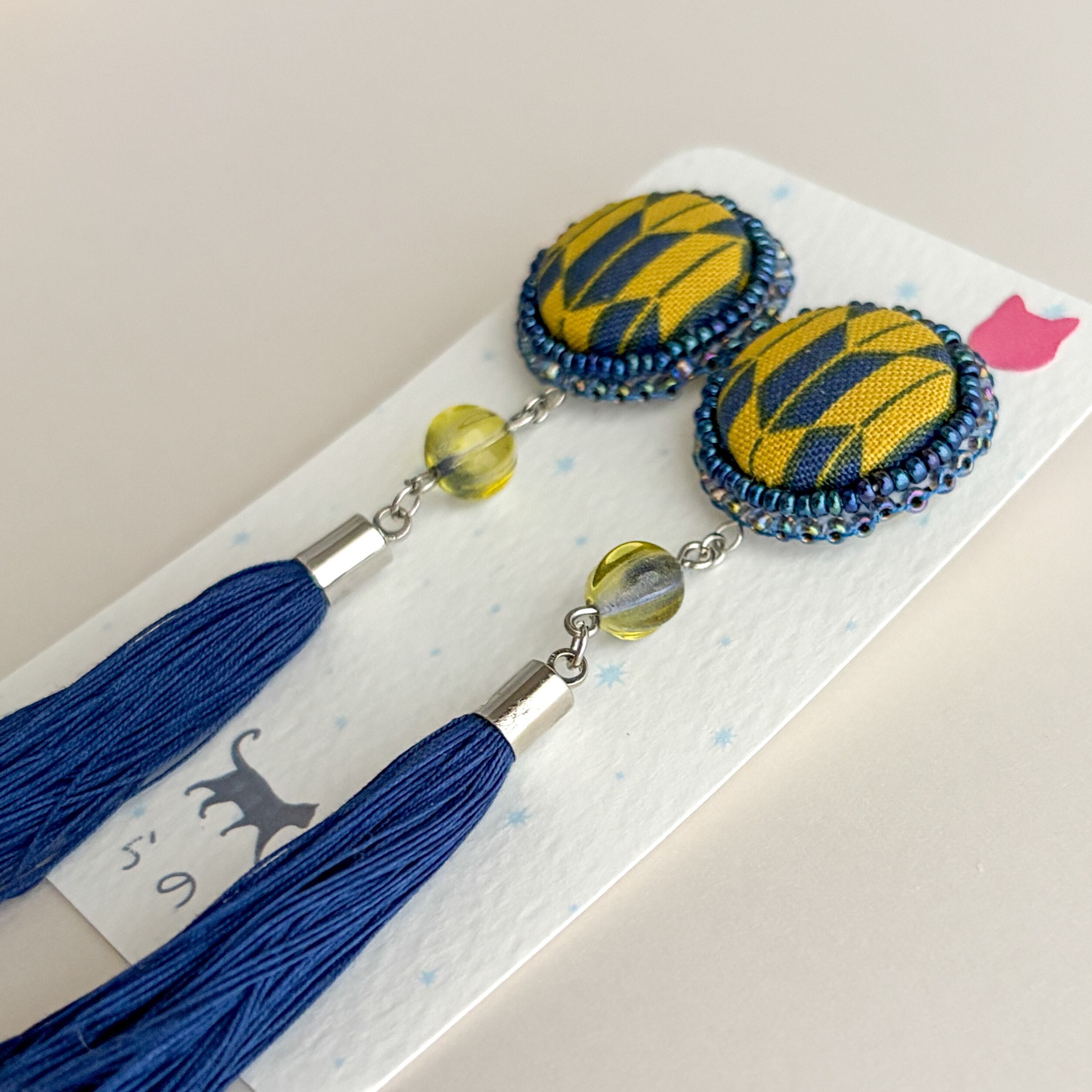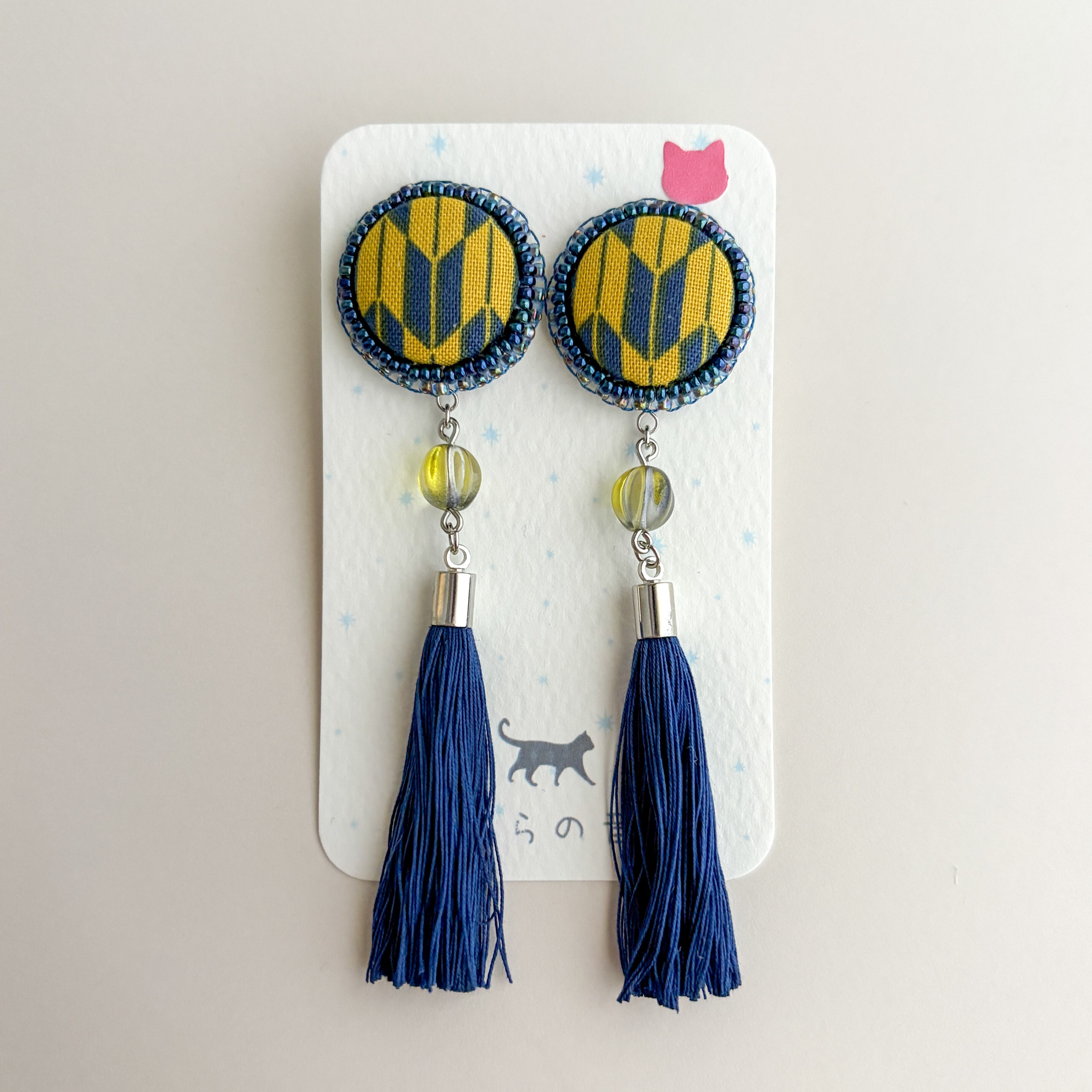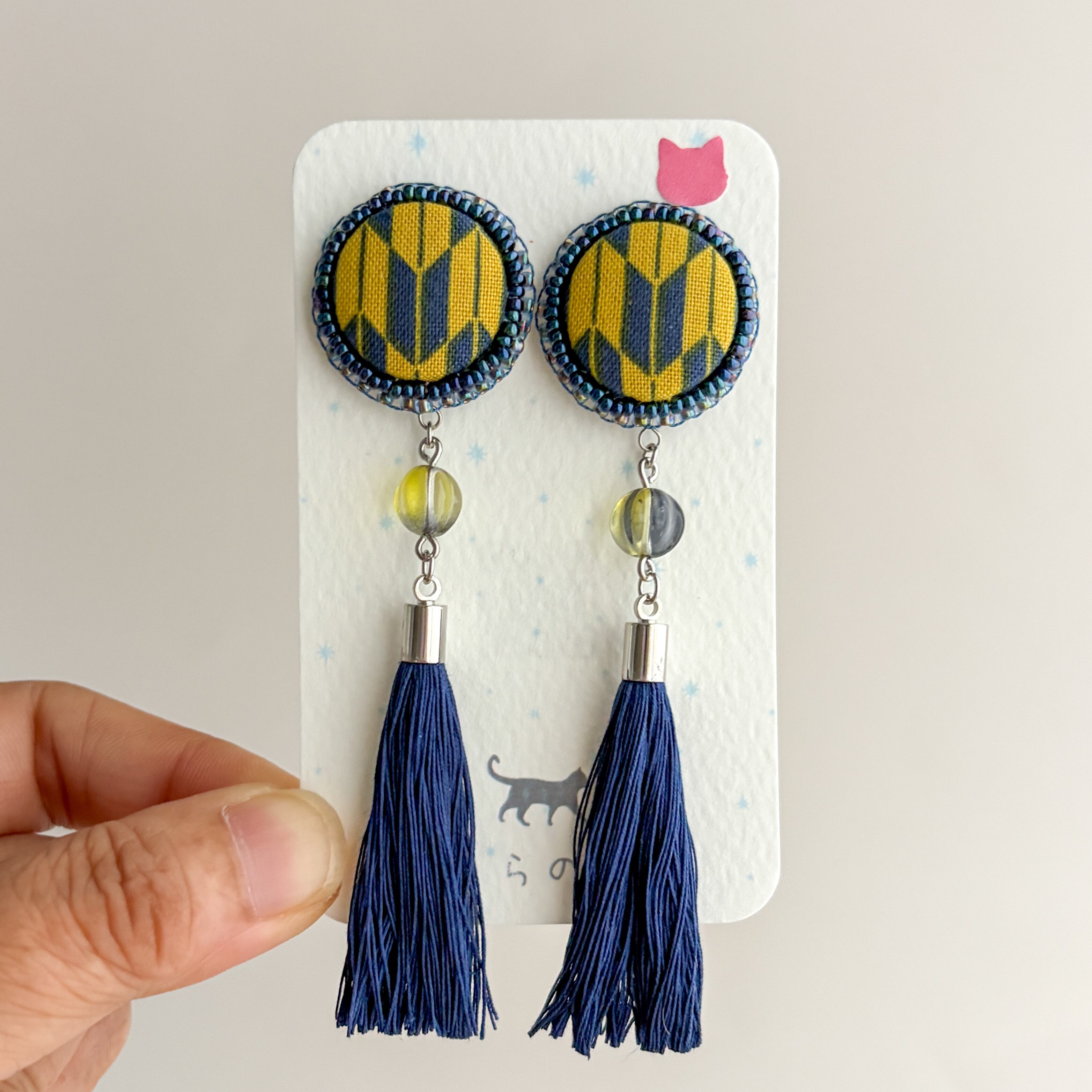 矢絣のくるみボタンとタッセルの耳飾りです。
