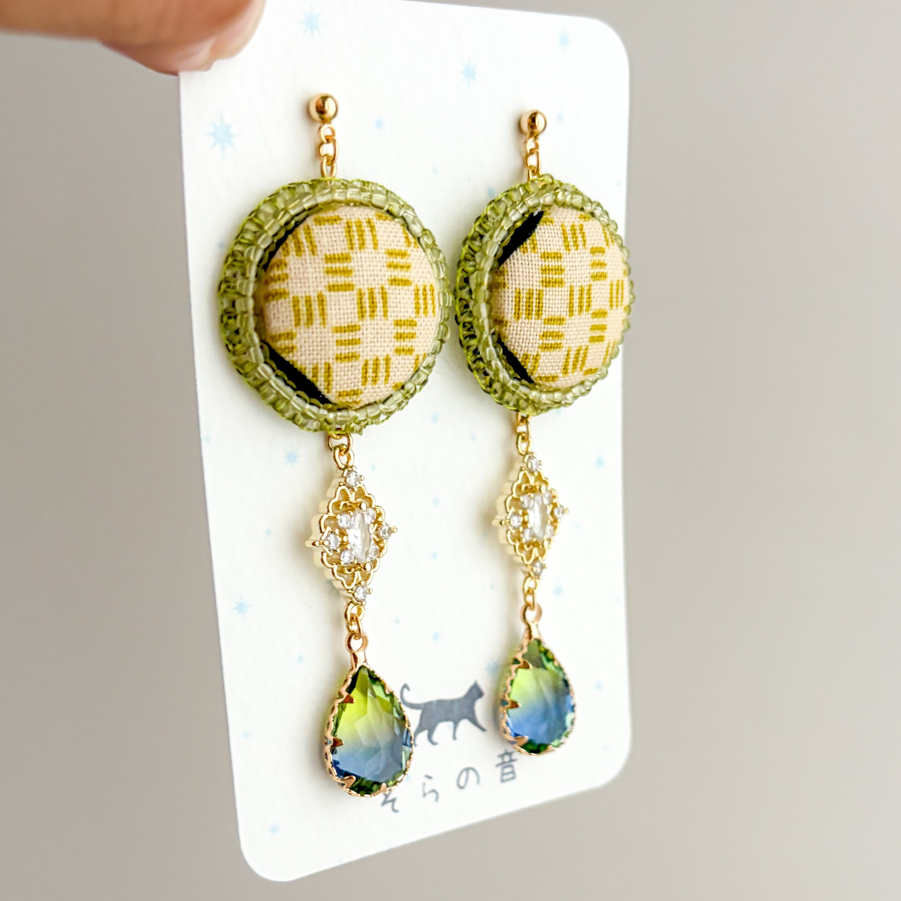 ・梅の花のくるみボタンとチェコビーズの耳飾り