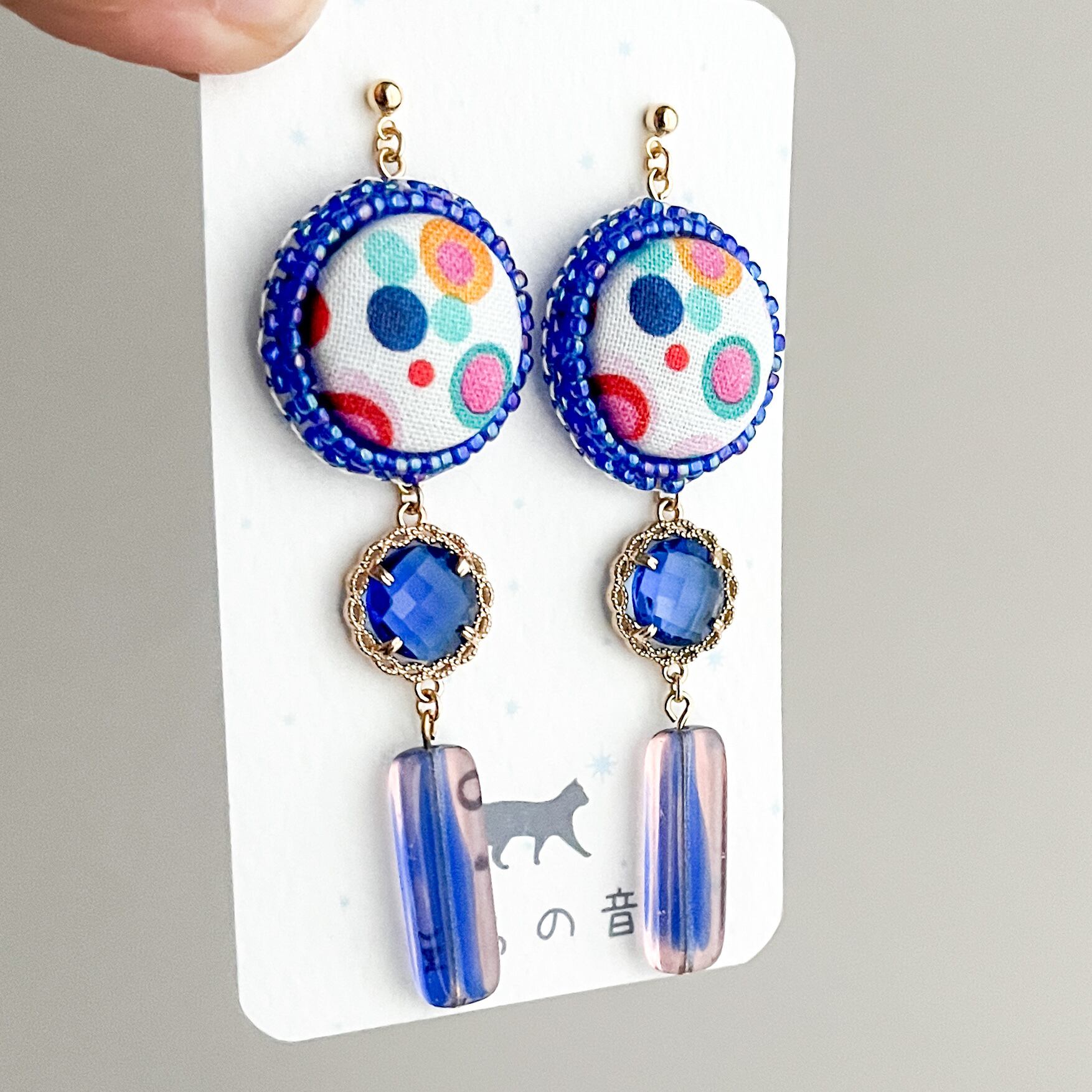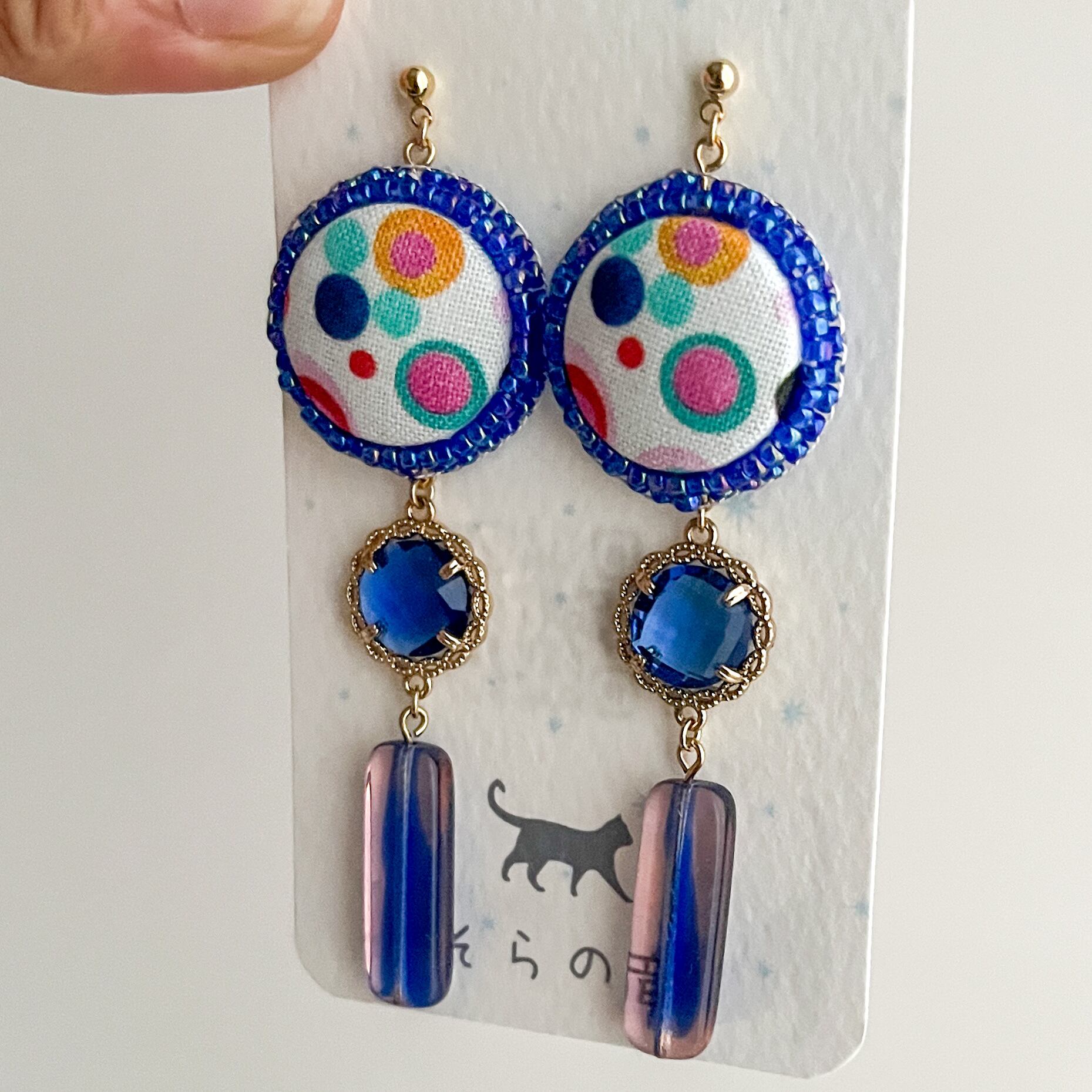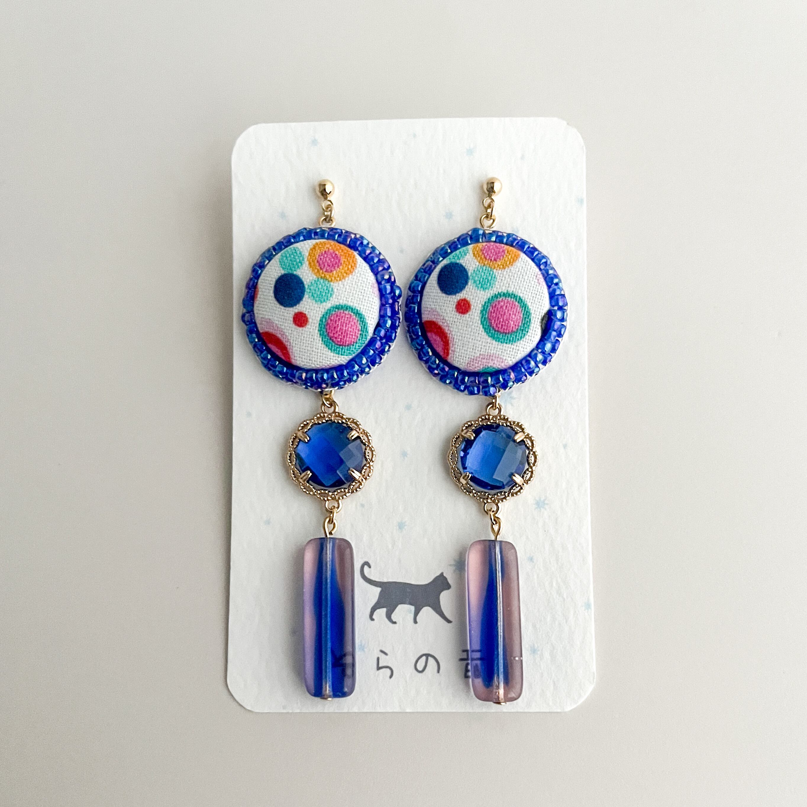 華やかなくるみボタンとチェコビーズの耳飾り