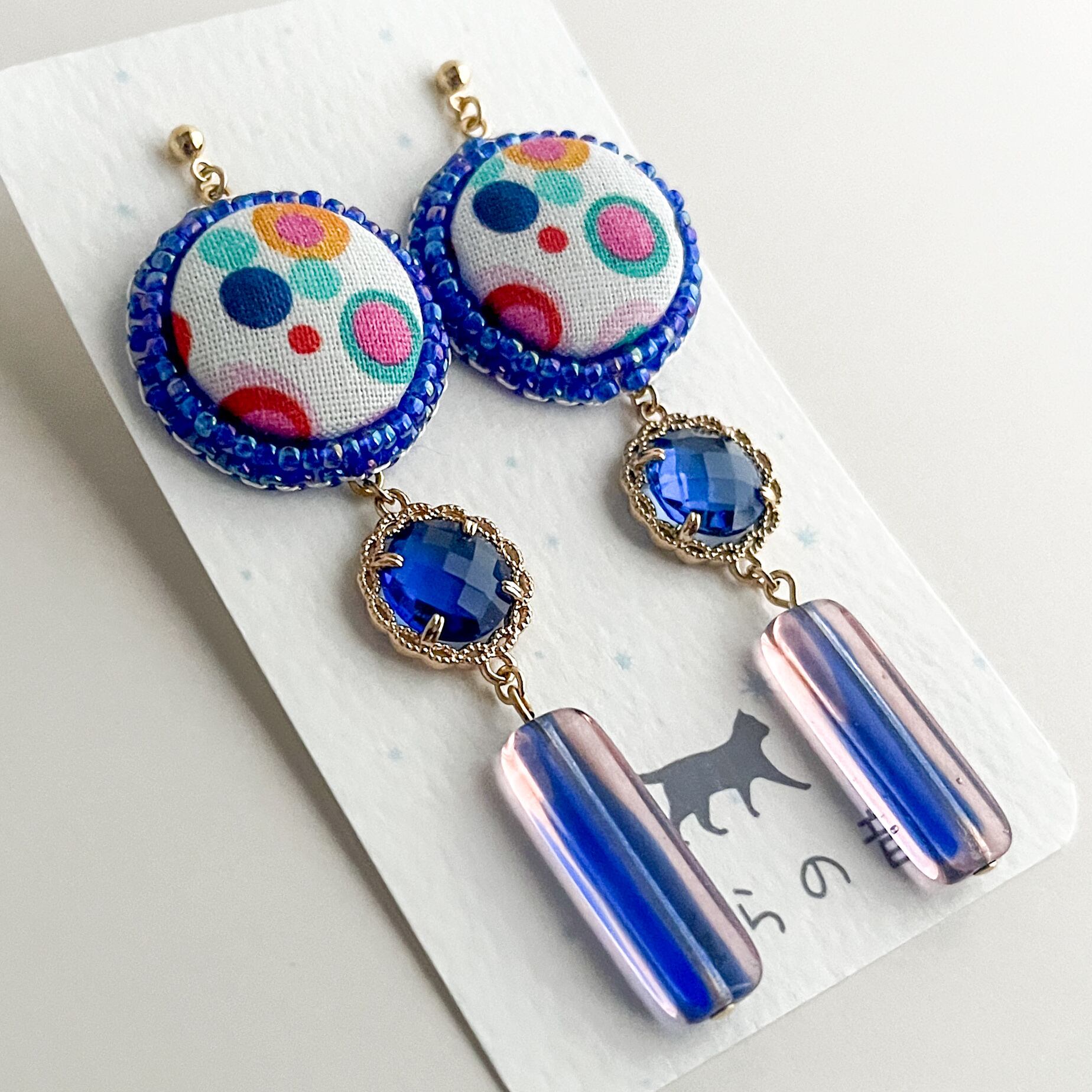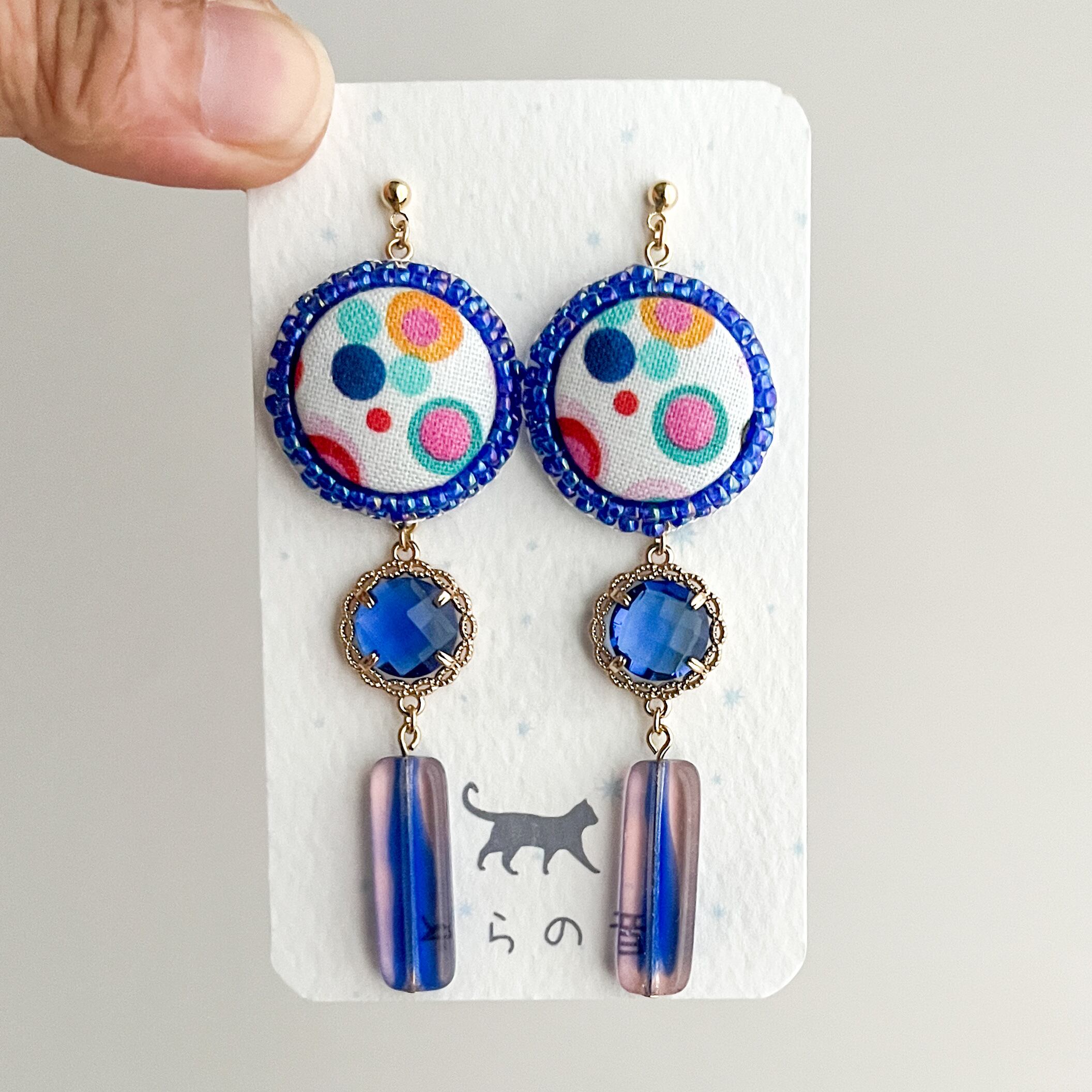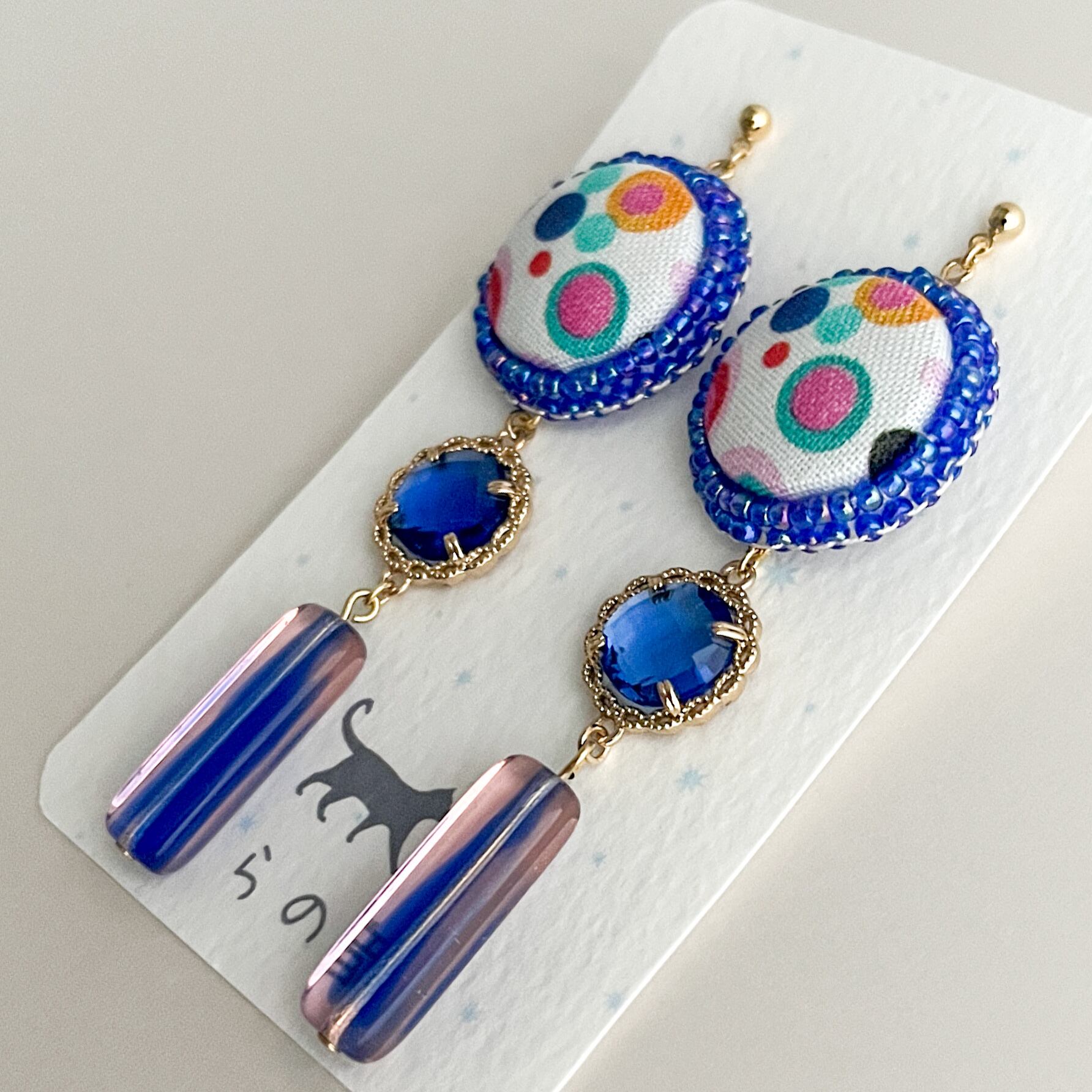 華やかなくるみボタンとチェコビーズの耳飾り