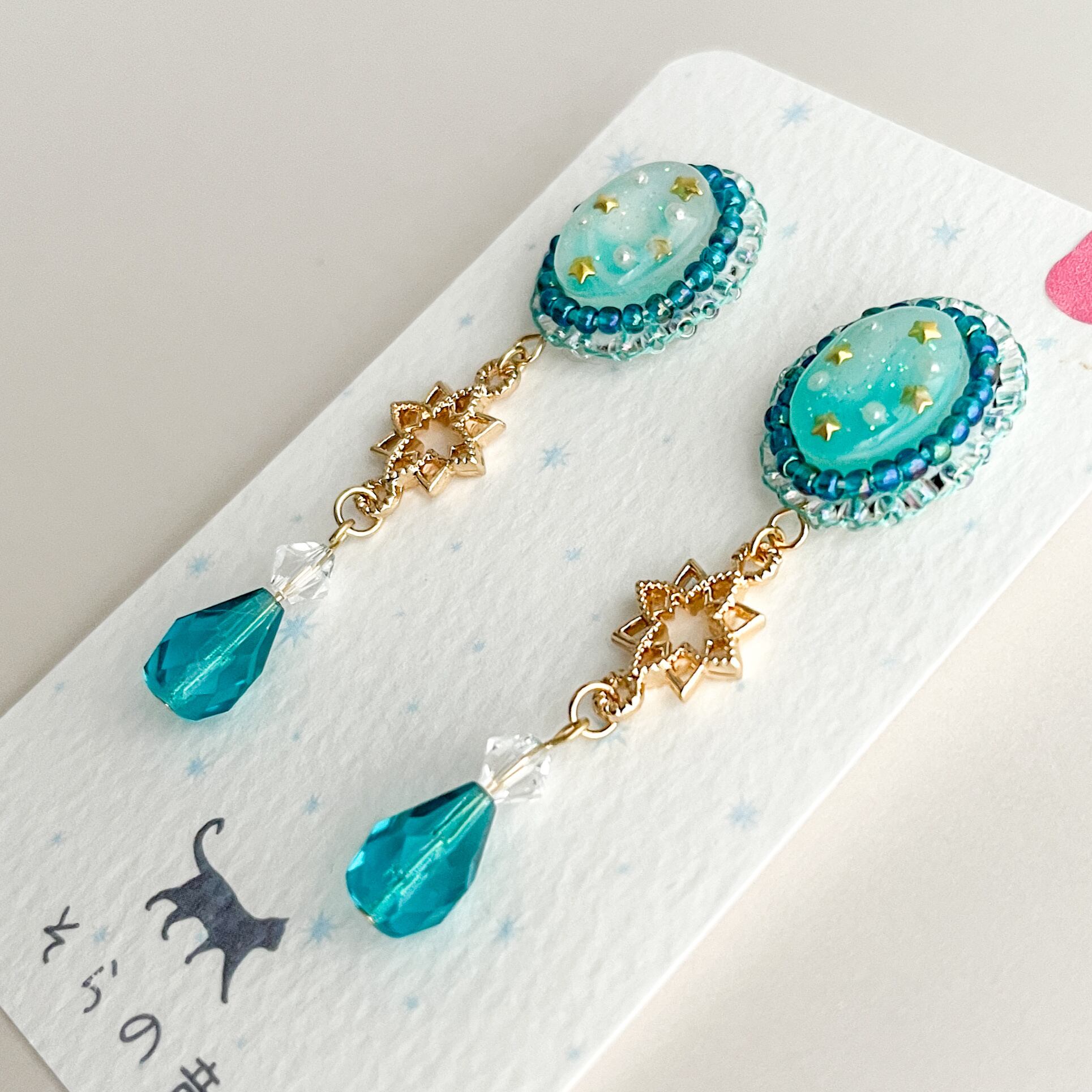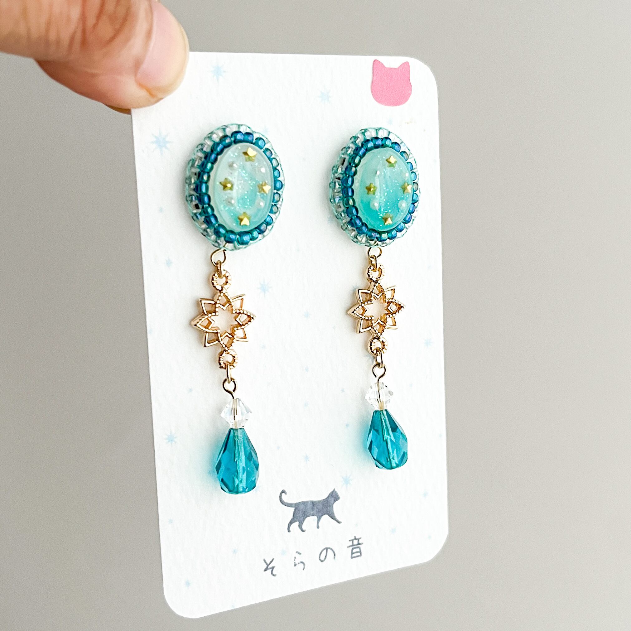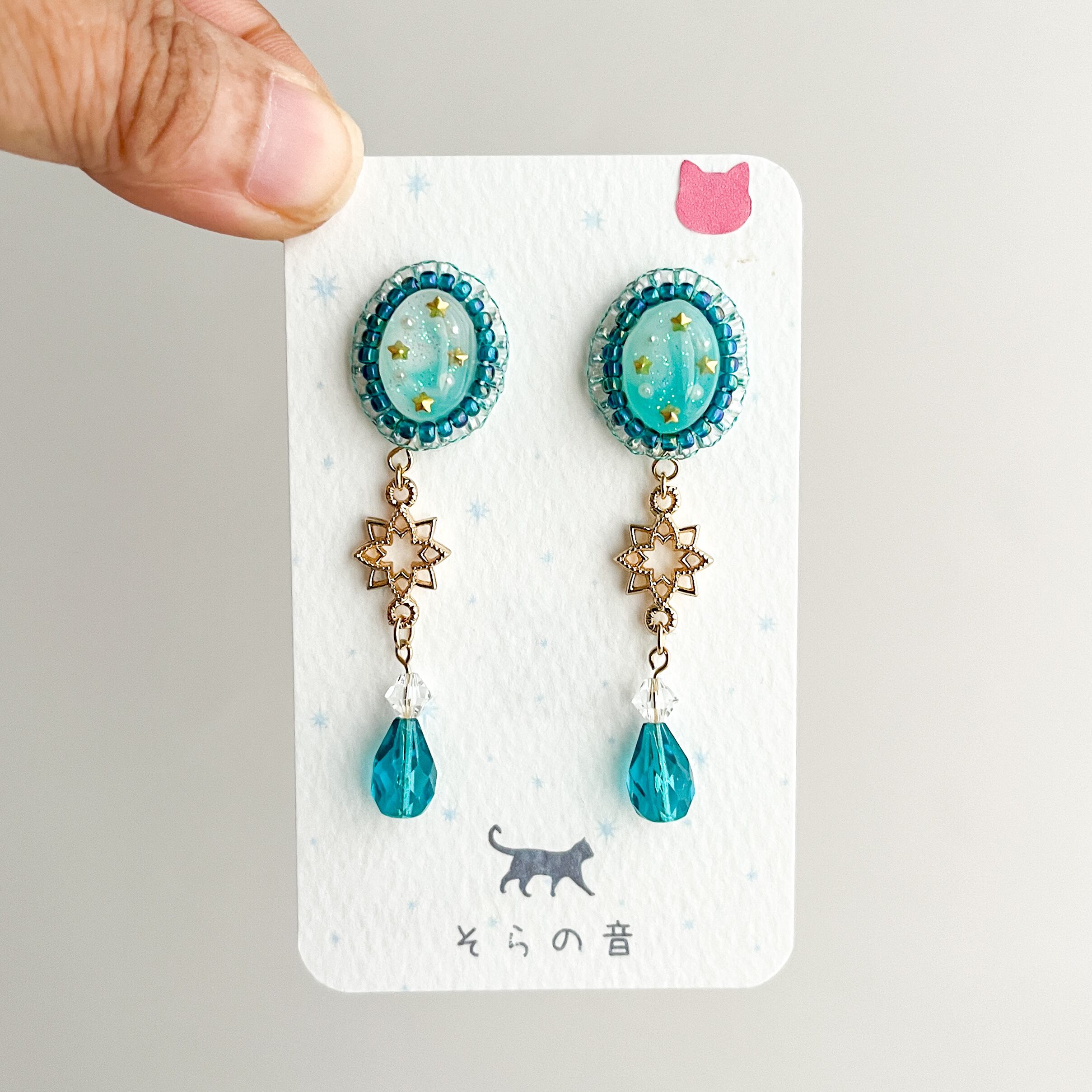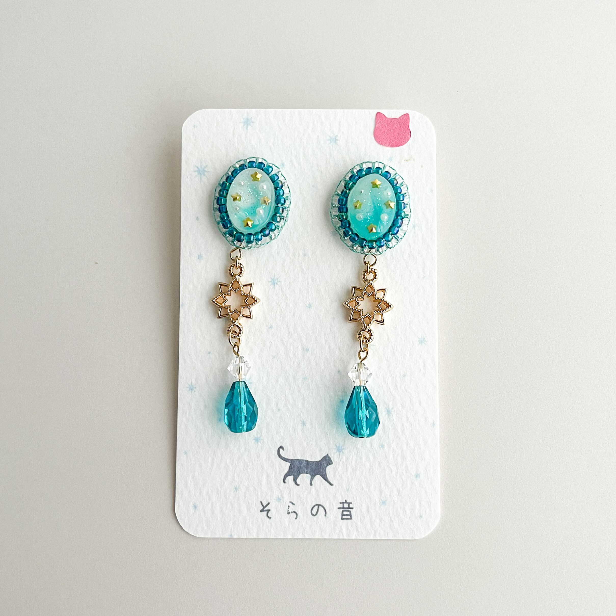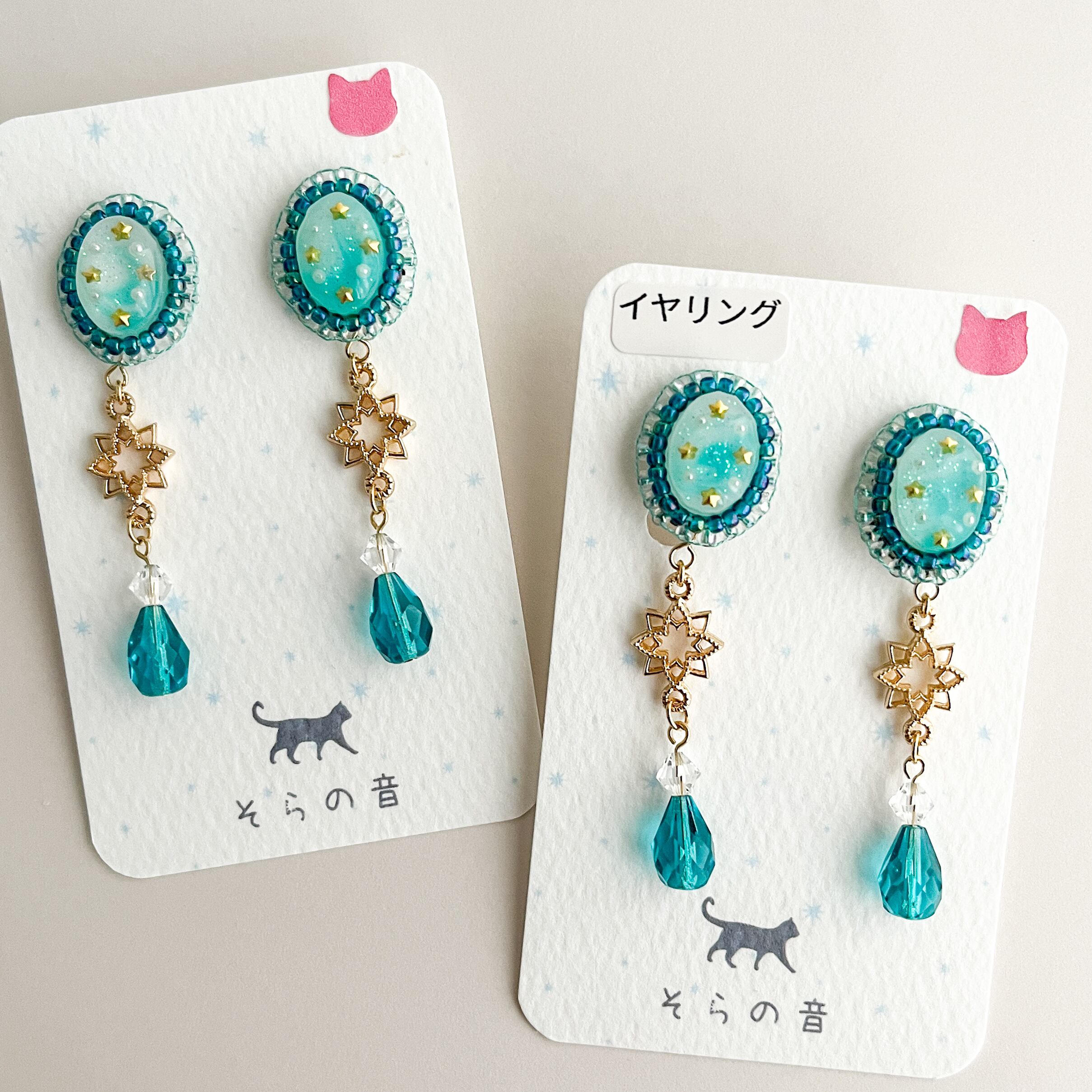 星と星チャームの耳飾りです。