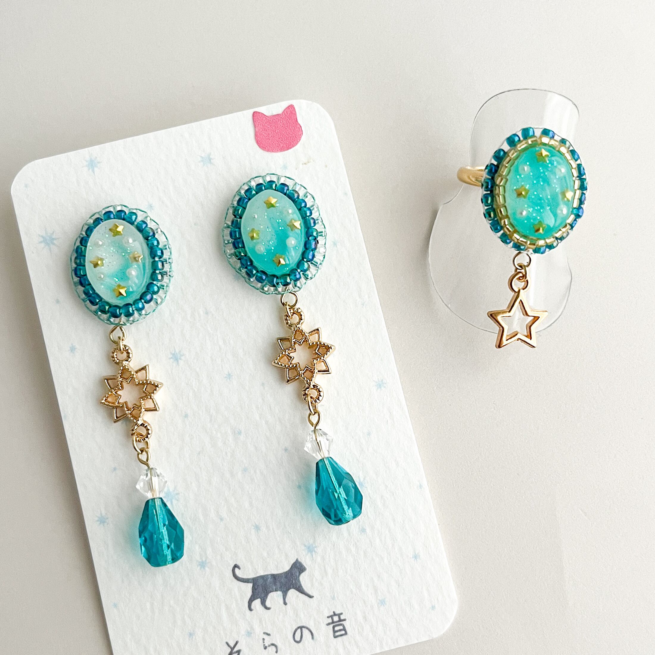 【レジン】星と星チャームの指輪