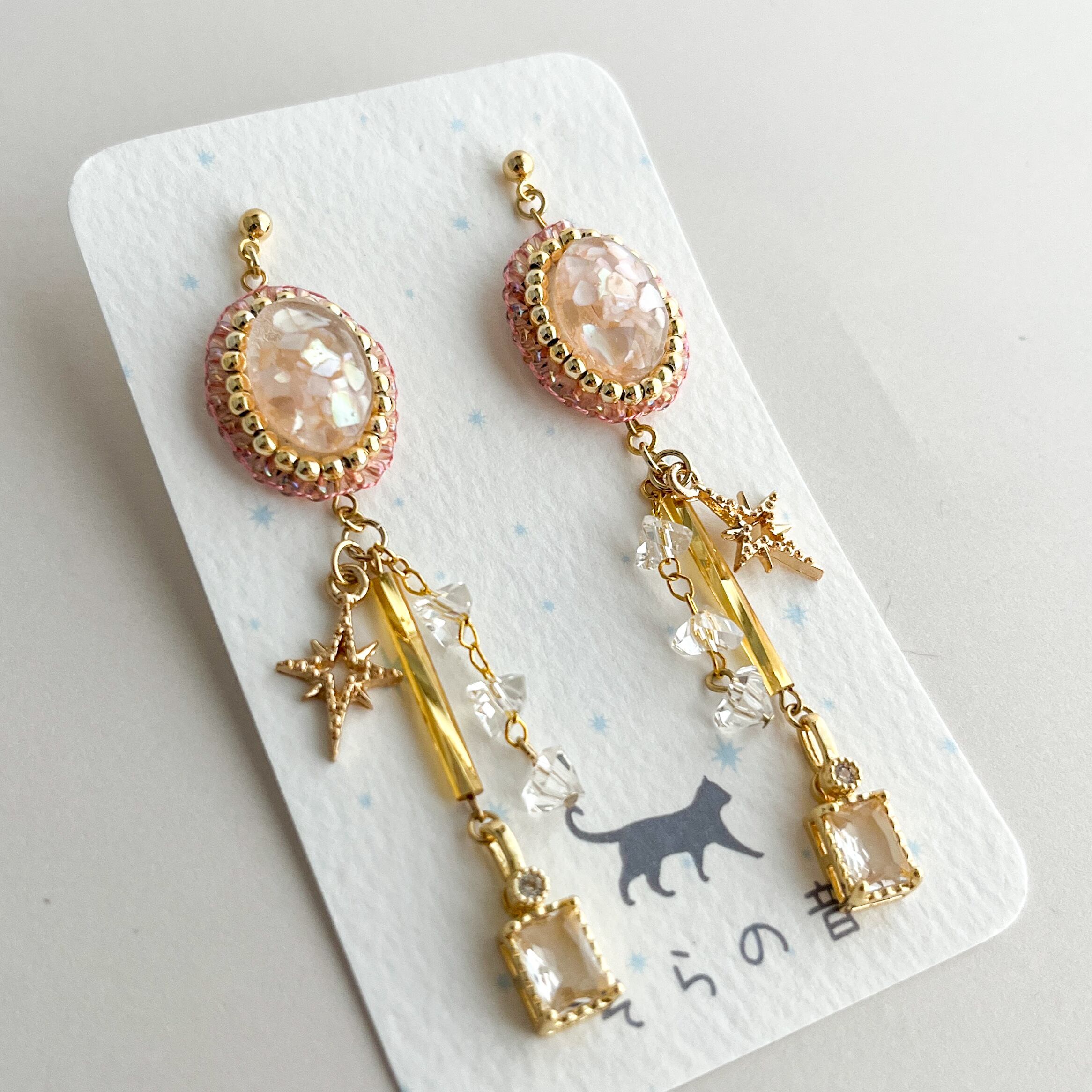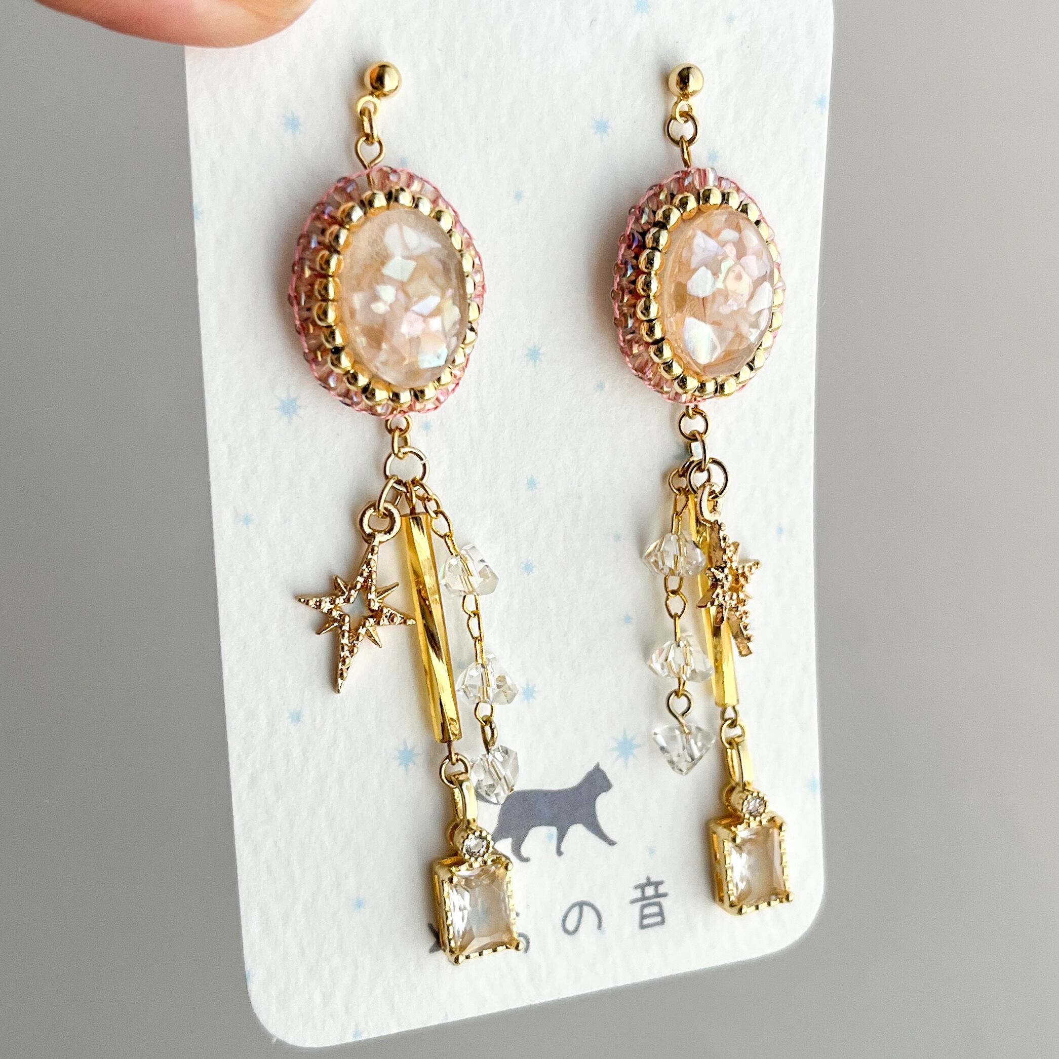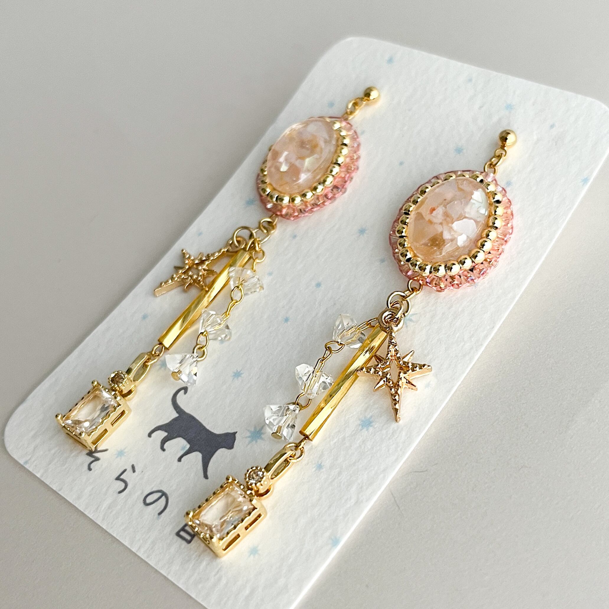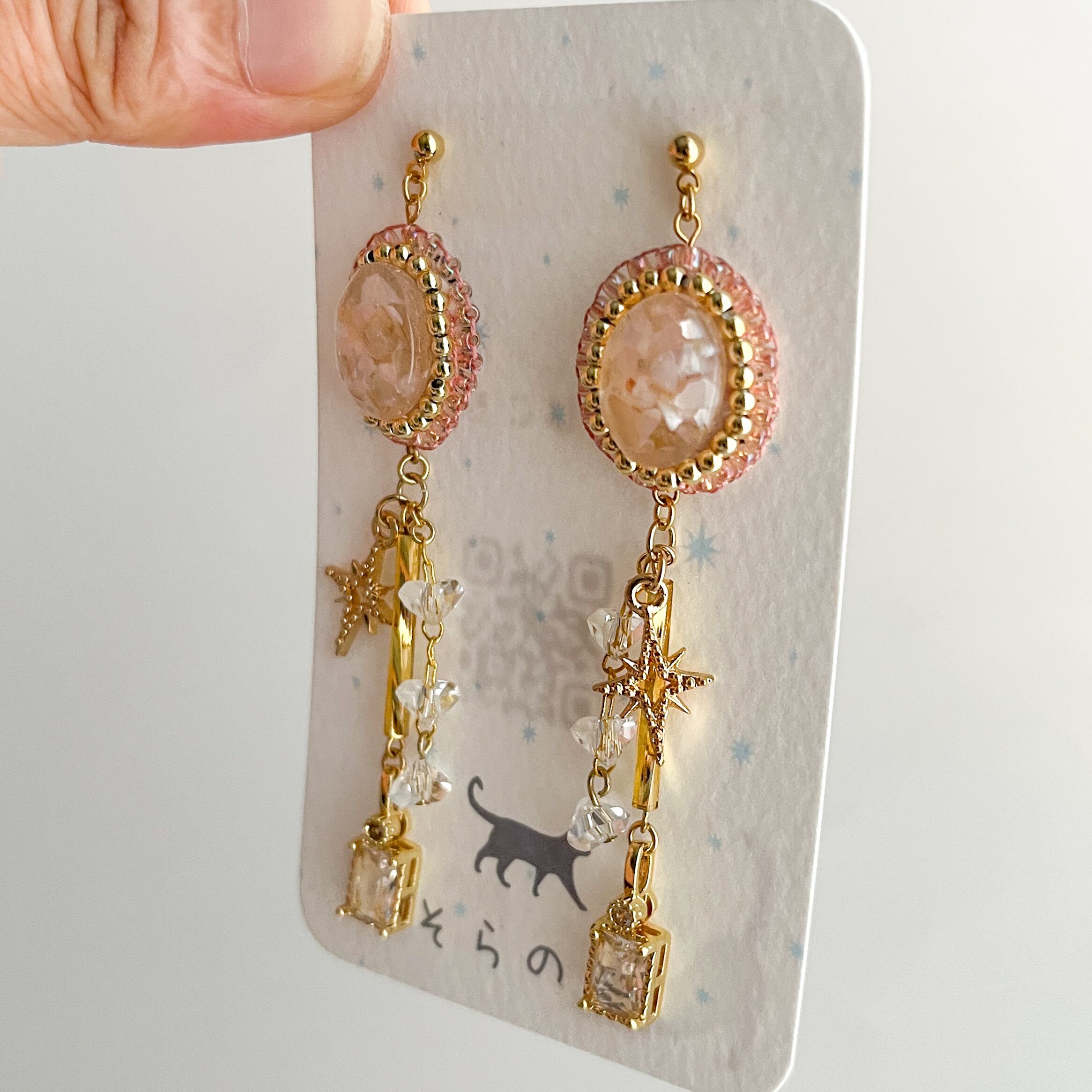 【レジン】星とキュービックジルコニアの耳飾り(ピンク)