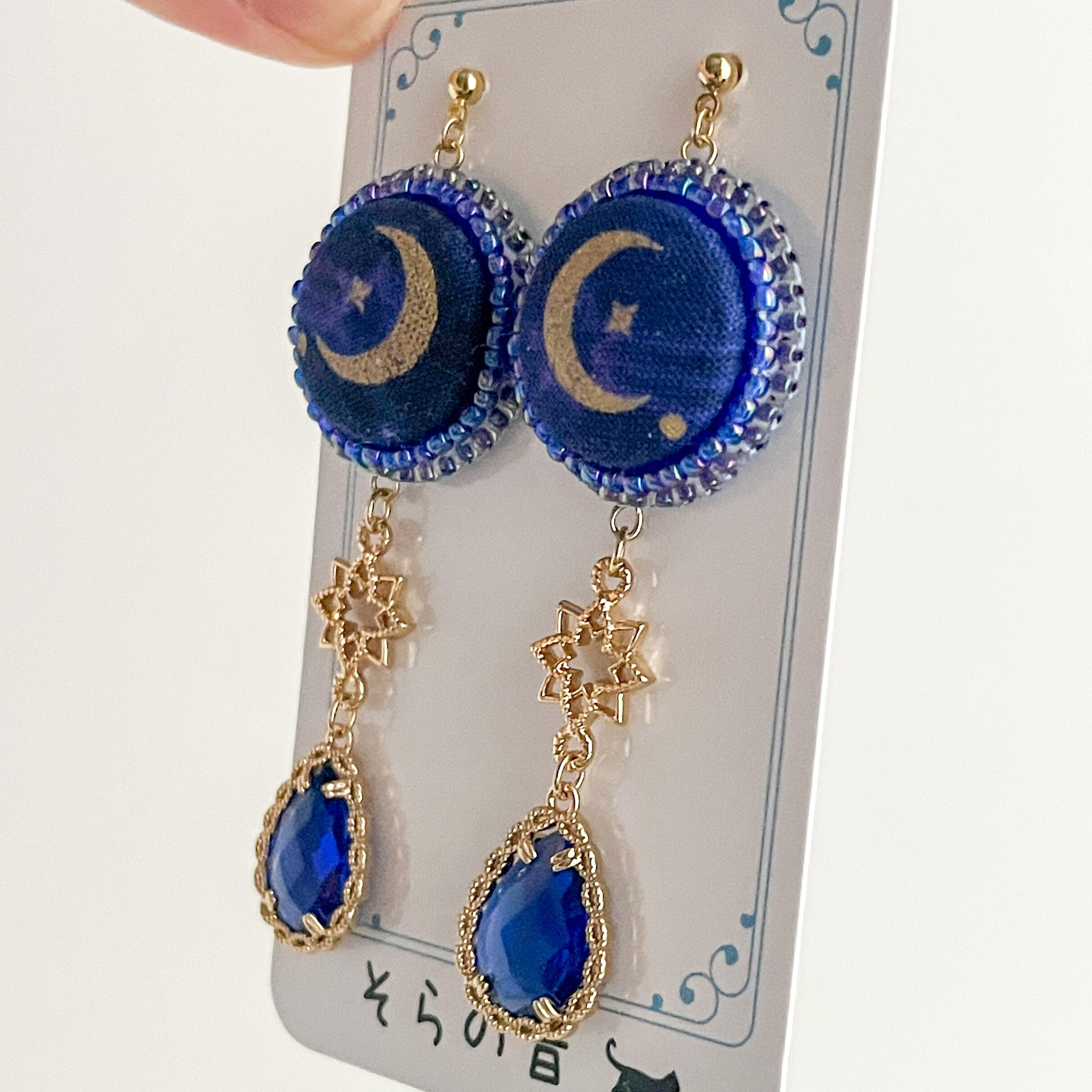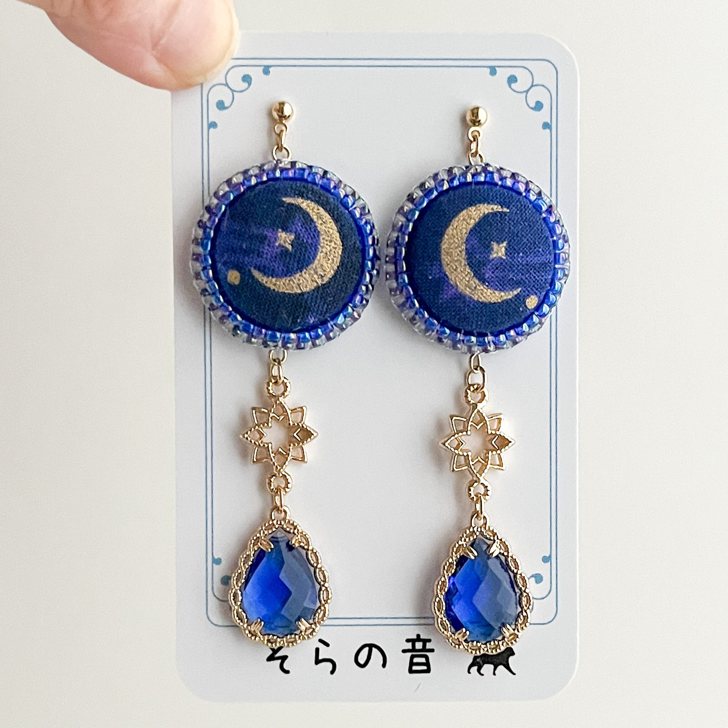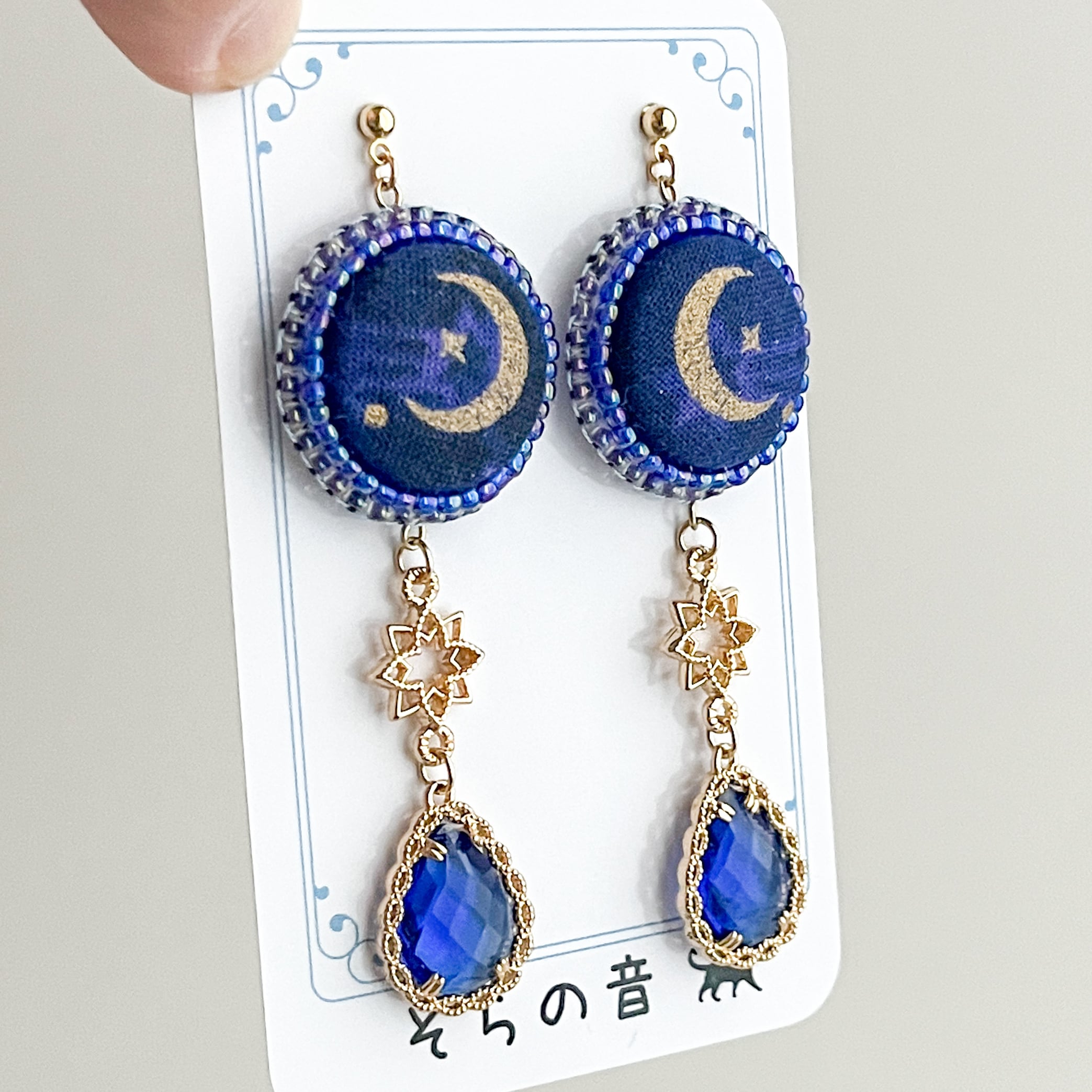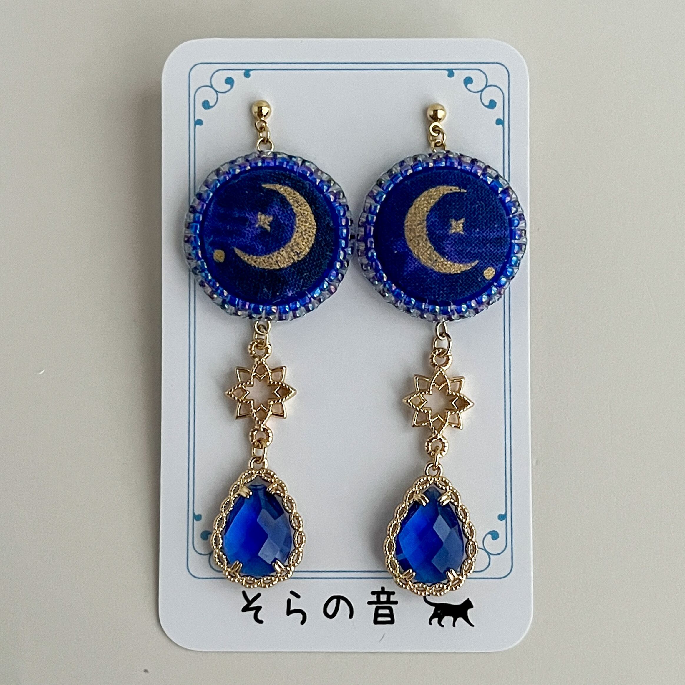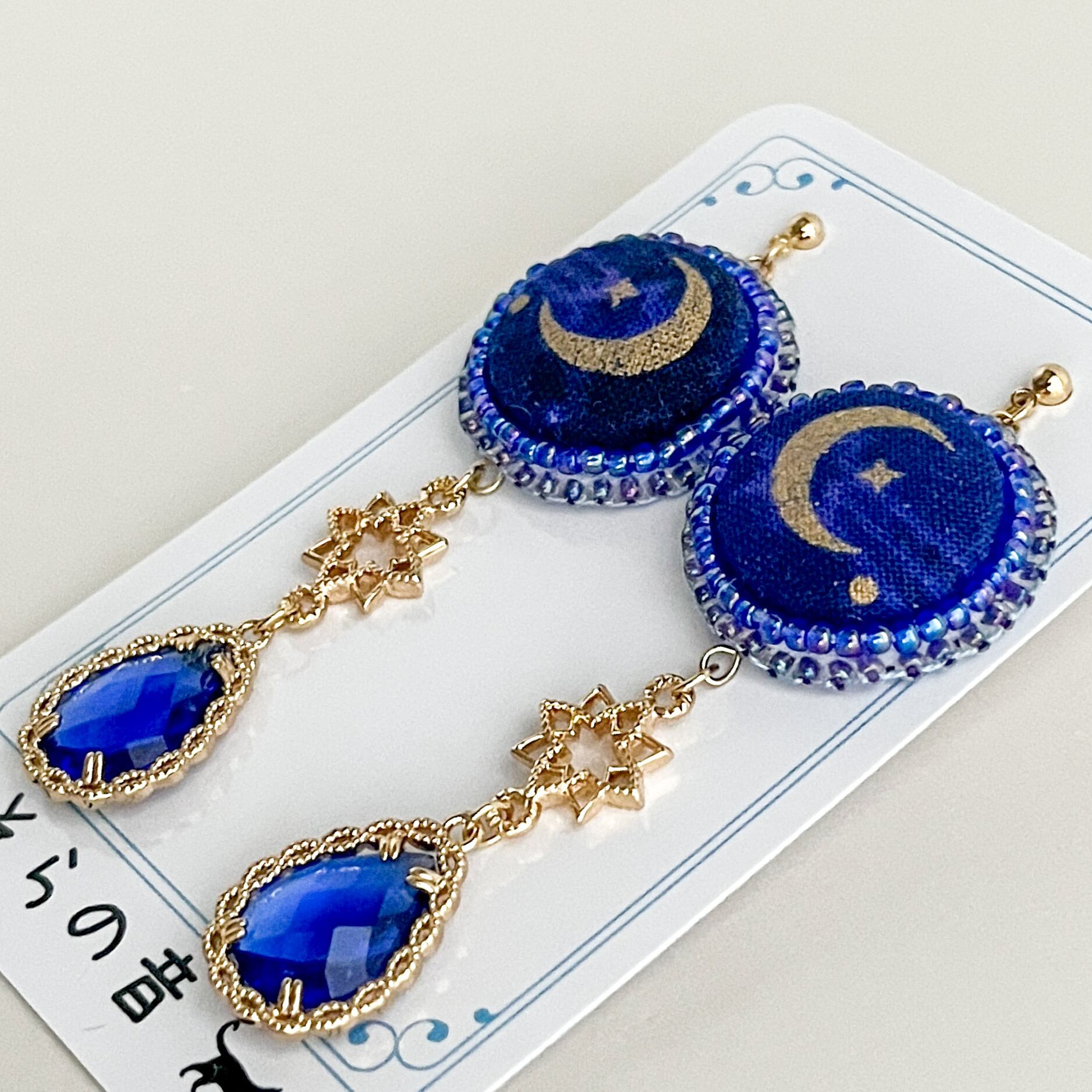 夜空みたいな色が可愛い!月とブルーのチャームのピアス